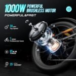 【⚡Unleash Power and Speed⚡】: ①This adult electric bike is equipped with a powerful 1000W motor. ②The maximum speed of the bicycle in electric mode can reach 30MPH. ③The high-speed and powerful motor can continuously output 85 N.m, allowing riders to go uphill easily. With this electric bicycle, you can ride easily on various road conditions and reach your destination comfortably and safely!