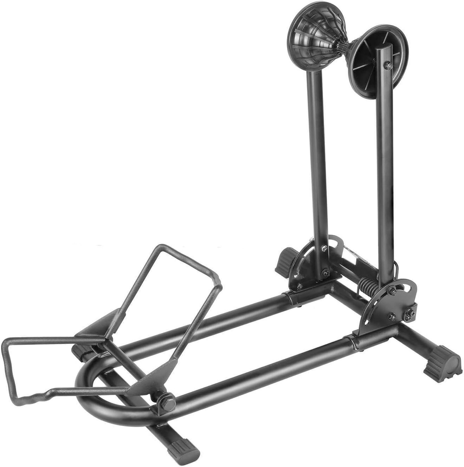 STABLE & SECURE BICYCLE STAND – This bike storage rack features a high-quality spring holding system that ensures your bike stays stable and secure in the holder. With three points of contact firmly gripping the tires, both the front and rear wheels sit deeper in the stand, providing a secure hold that prevents tipping or wobbling. This design keeps your bike’s cassettes, hubs, derailleurs, spokes, and frames protected from scratches and damage.