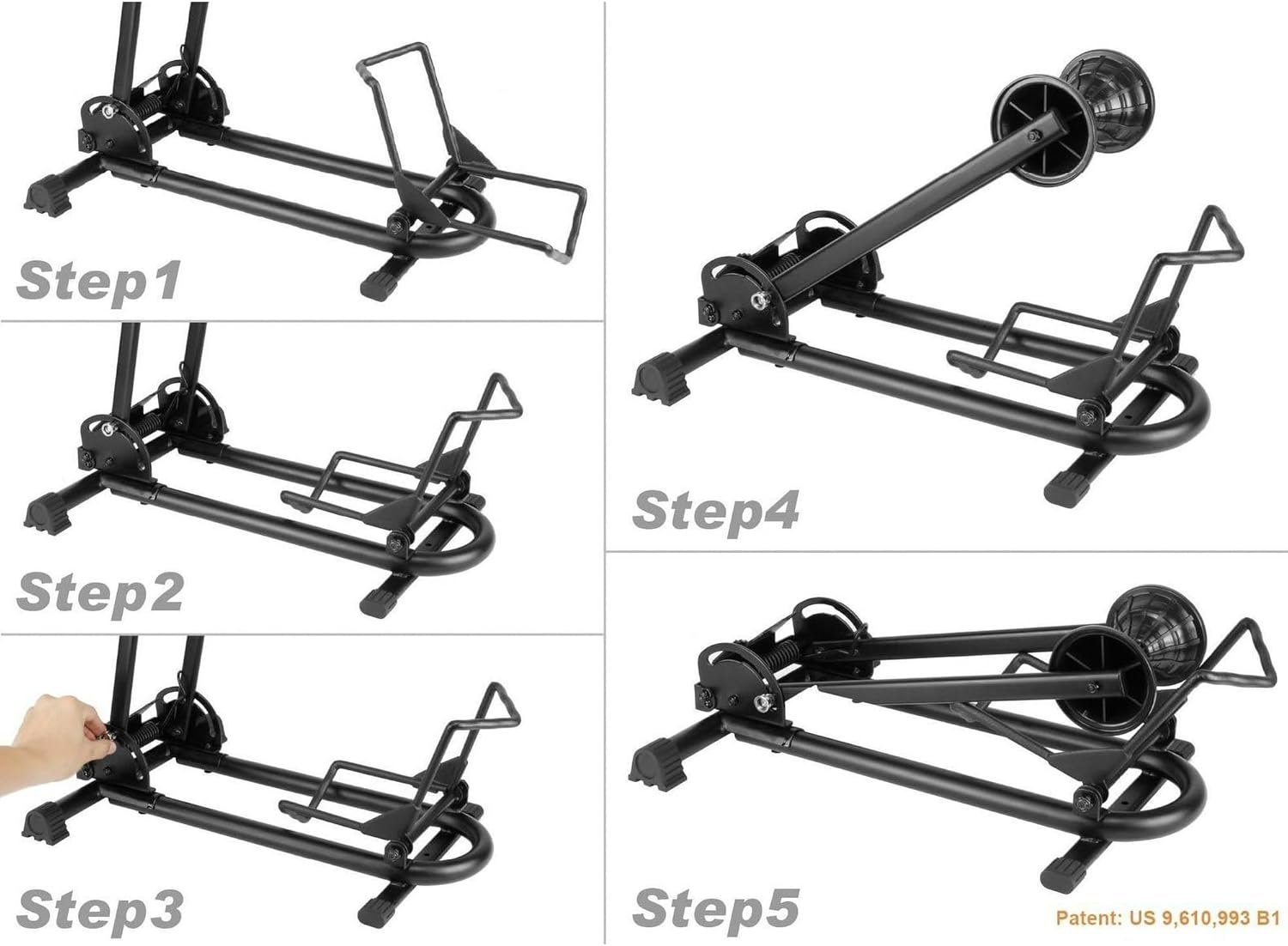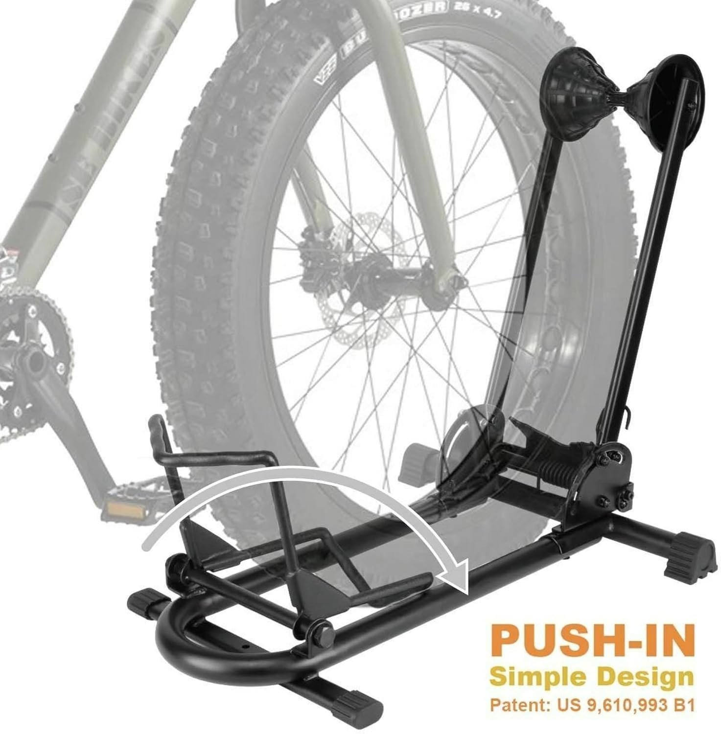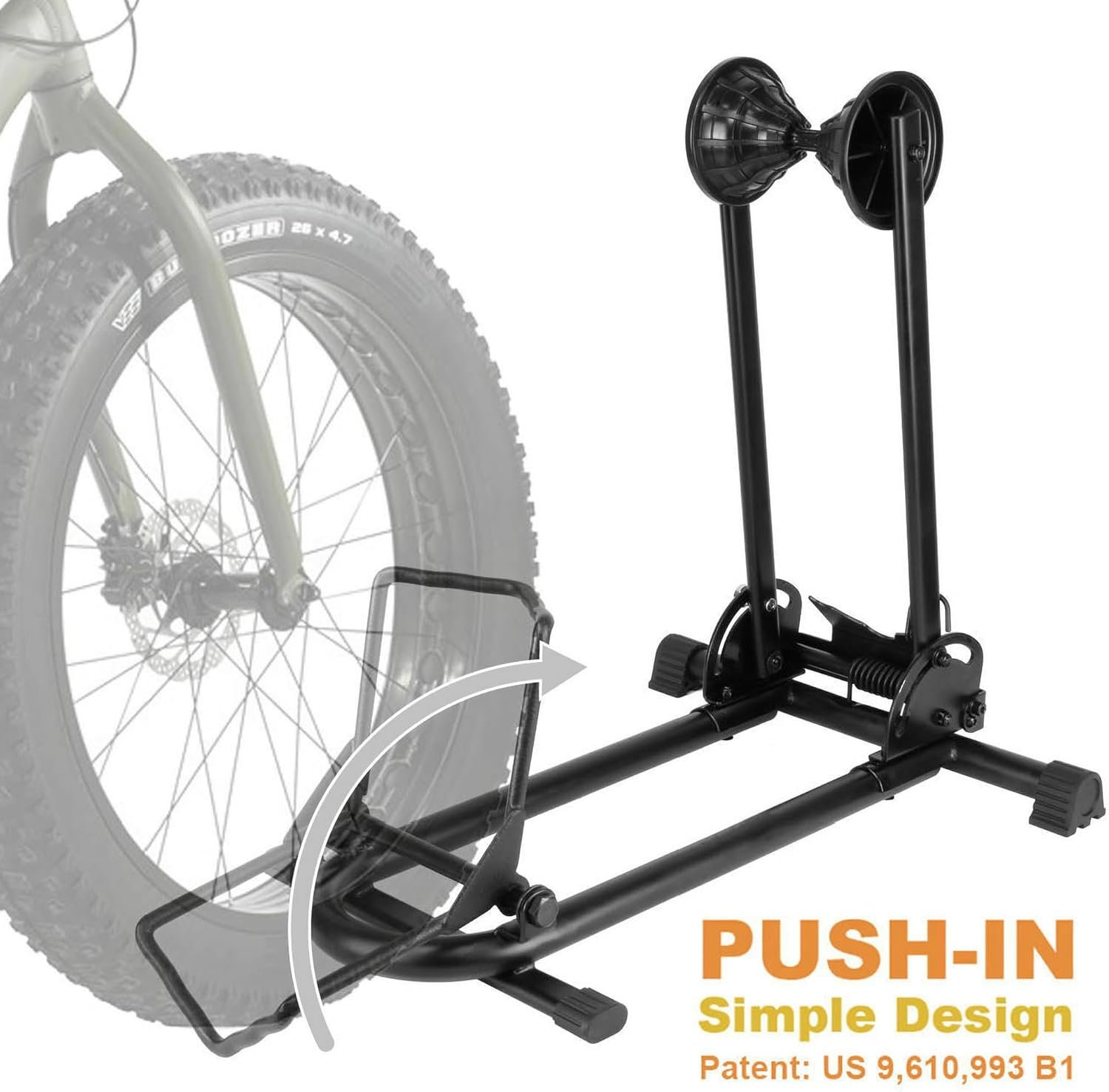 SIMPLE PUSH IN DESIGN – FIT all bikes up with up to 5.0″ tires. Quick & Easy effortless push-in system. Unlike other bike stands, which you need to lift the bike and put it into. Our stand’s front holder will tilt when you push the bike into the rack. This patented great design will be PERFECT for heavy bikes such as downhill, mountain and beach bikes.