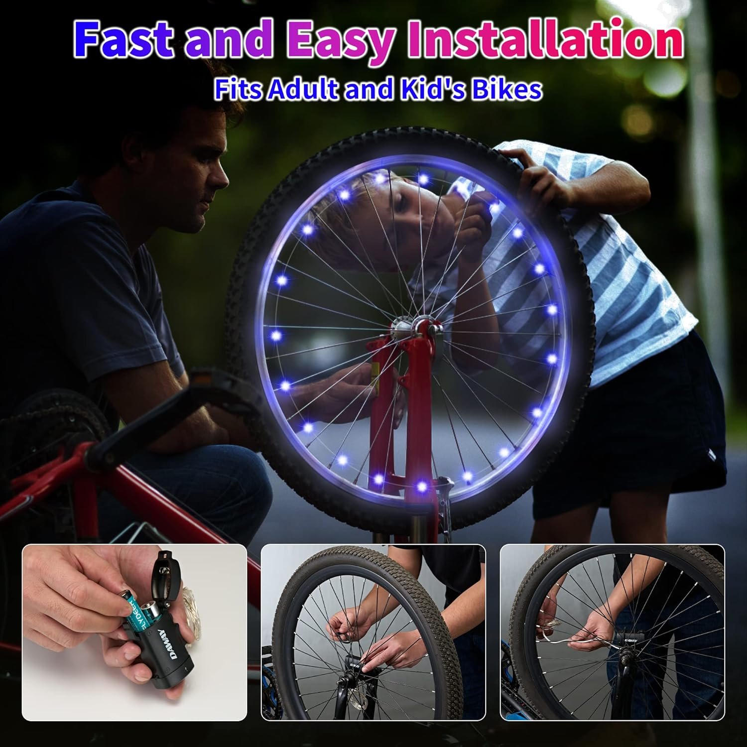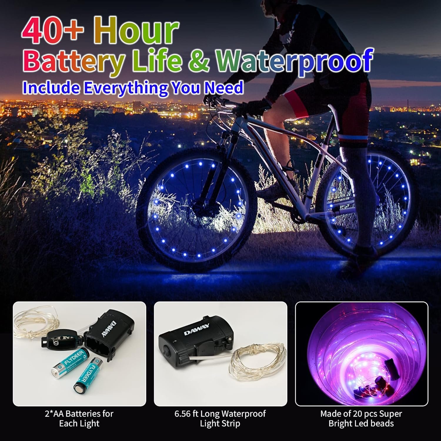 DAWAY A01 LED Bike Wheel Lights – Ultra-Bright, Waterproof Bicycle Spoke Lights with Batteries – Fun, Safe, Glow Bike Tire Decoration Accessories for Kids, Boys, Girls, Adults – Great for Night Riding