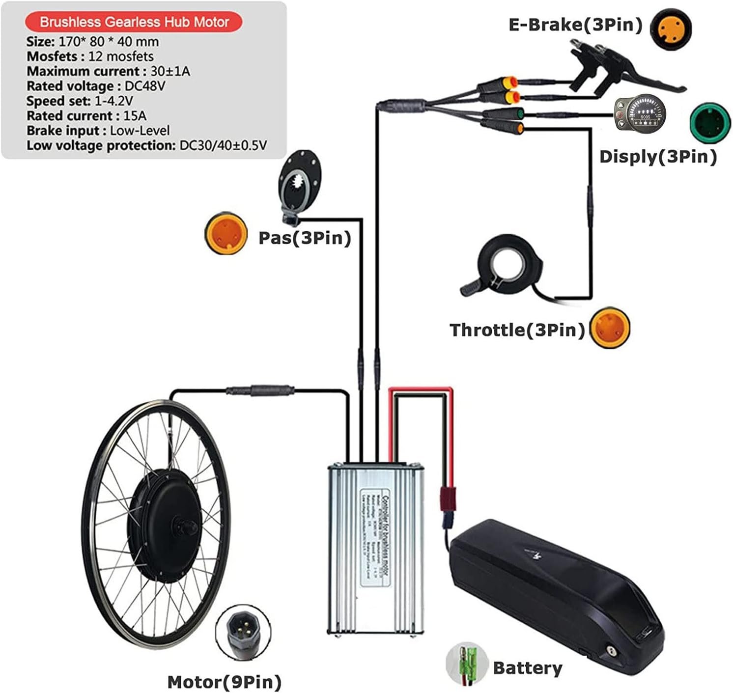 【HIGH COST PERFORMANCE】: With this product, you can easily convert your ordinary bicycle into an electric bicycle. That’s a few hundred pounds cheaper than buying a new e-bike. It only takes 1-2 hours for one person to complete the modification. (Note: Batteries are not included. The power and voltage of the batteries you buy should match our settings. When installing, please make sure the cables are not confused. Otherwise, the product may be damaged.)