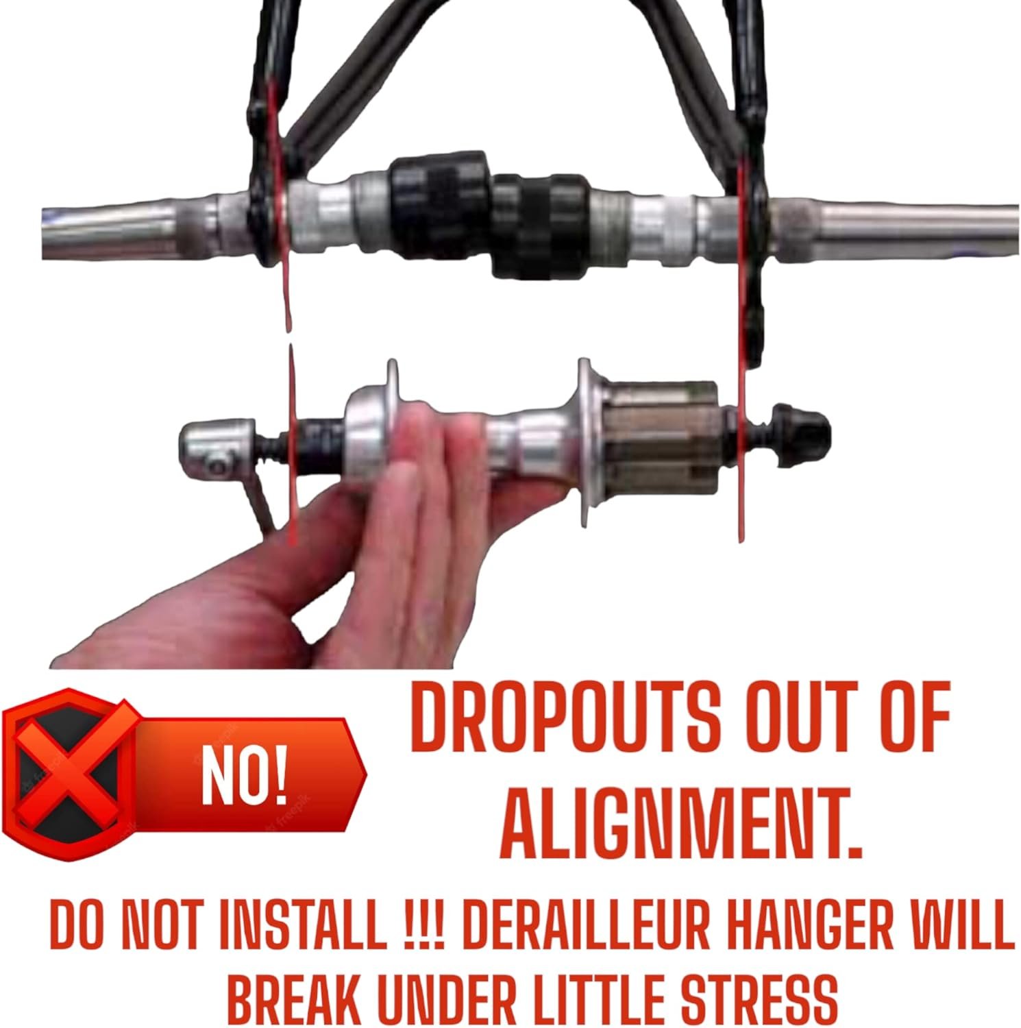 INSTALLATION: Recommended to check rear dropout alignment before installation. If not Aligned. Derailleur Hangers will continue to break until Rear Frame Dropouts are aligned