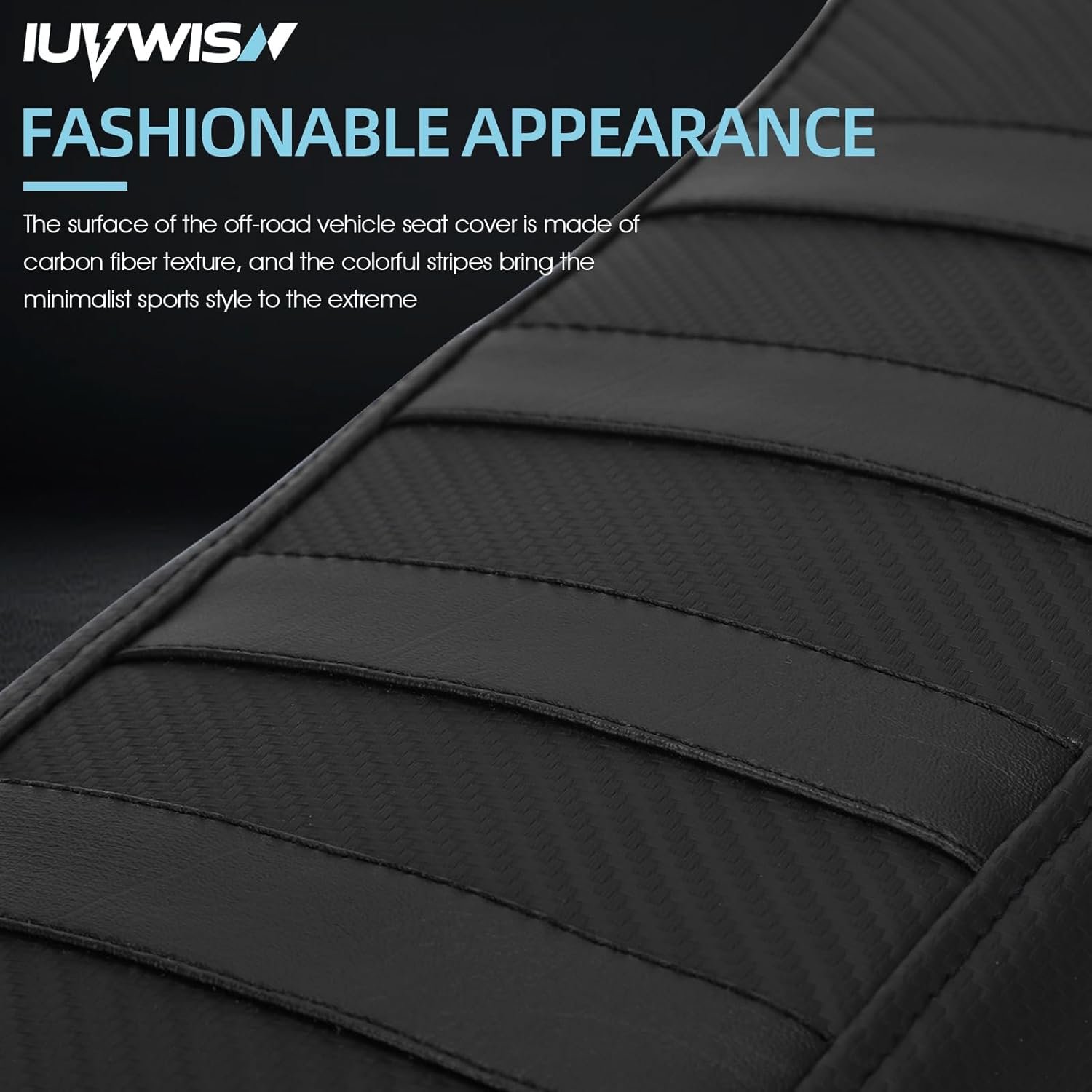 STYLISH APPEARANCE – The surface of the dirt bike seat cover is made of carbon fiber texture, and the color stripes take the minimalist sports style to the extreme. A variety of color seat covers can give motorcycles more matching possibilities.
