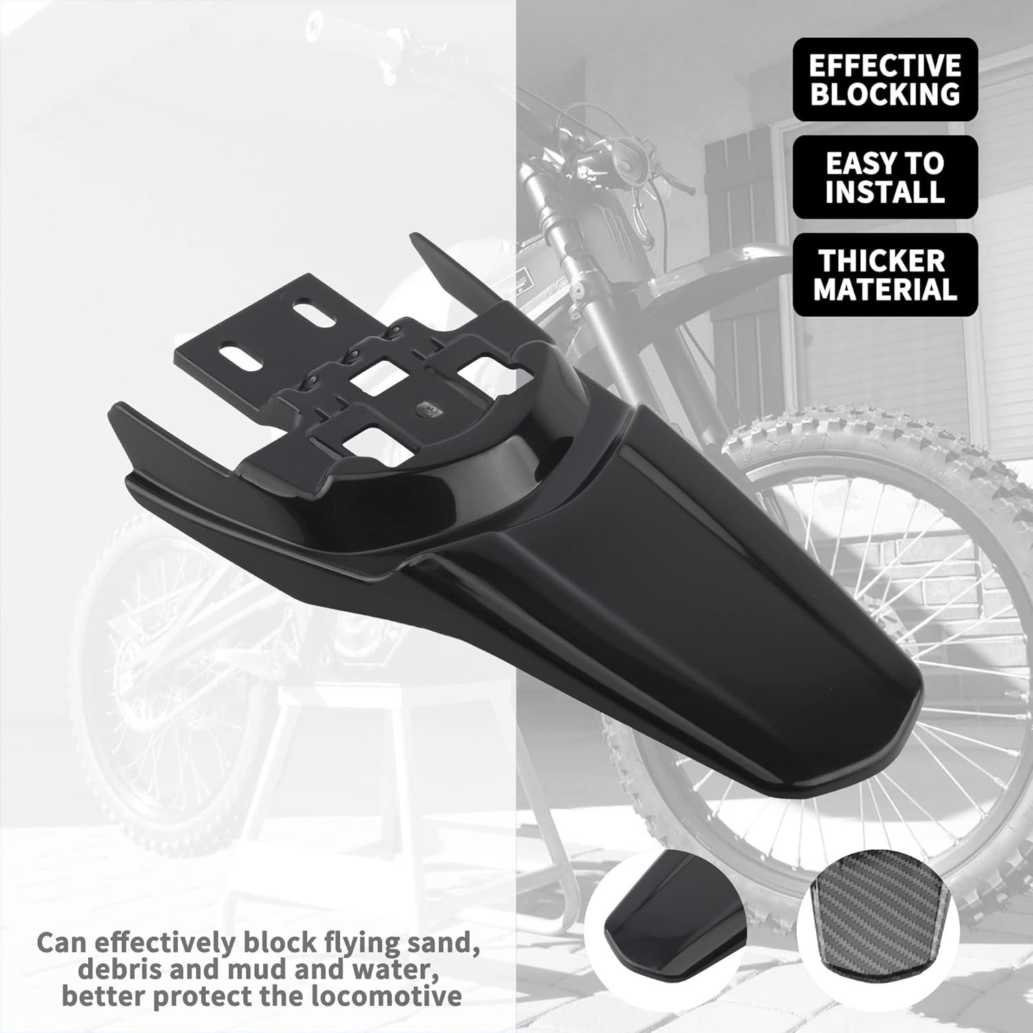 [EFFECTIVE PROTECTION] The motorcycle fender prevents the silt from damaging the tire in some tough conditions.Even prevents us from throwing road debris at other vehicles and pedestrians.