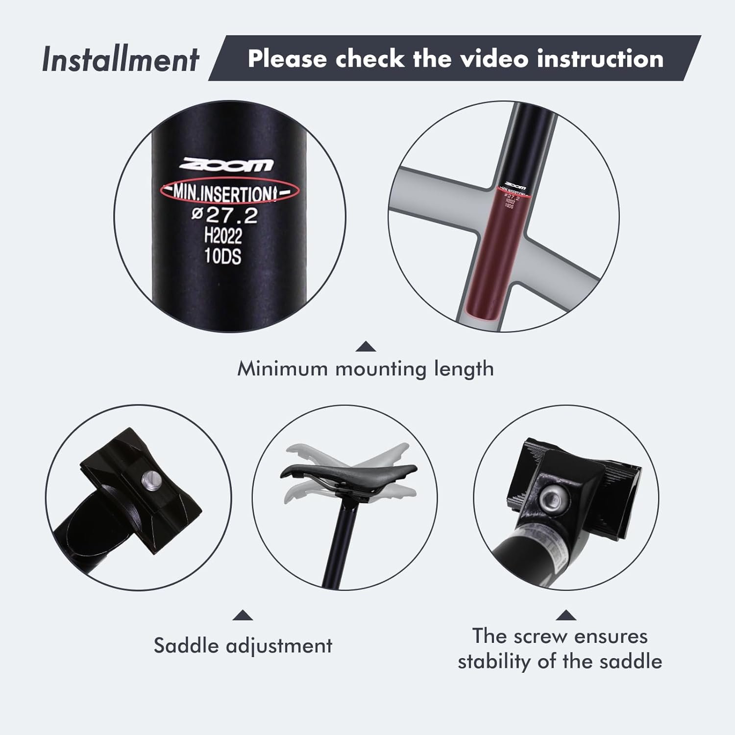 • Lightweight: Aluminum material to ensure the seatpost lightweight and strength. The bike seatpost weight is between 305 to 340g(10.7oz to 12oz). Making your bike easier to handle and ride.