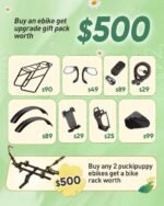 Luxury Gift Pack 1+1: In addition to the Golden Retriever, You will also receive a luxury ride package worth 400 USD: rear rack, fender, cell phone holder, bike lock, water cup holder, bike cover and bike mirrors!PUCKIPUPPY suitable only. Get any 2 PUCKIPUPPY ebikes, get 1 extra hitch bike rack! (Note: not suitable for tricycles)