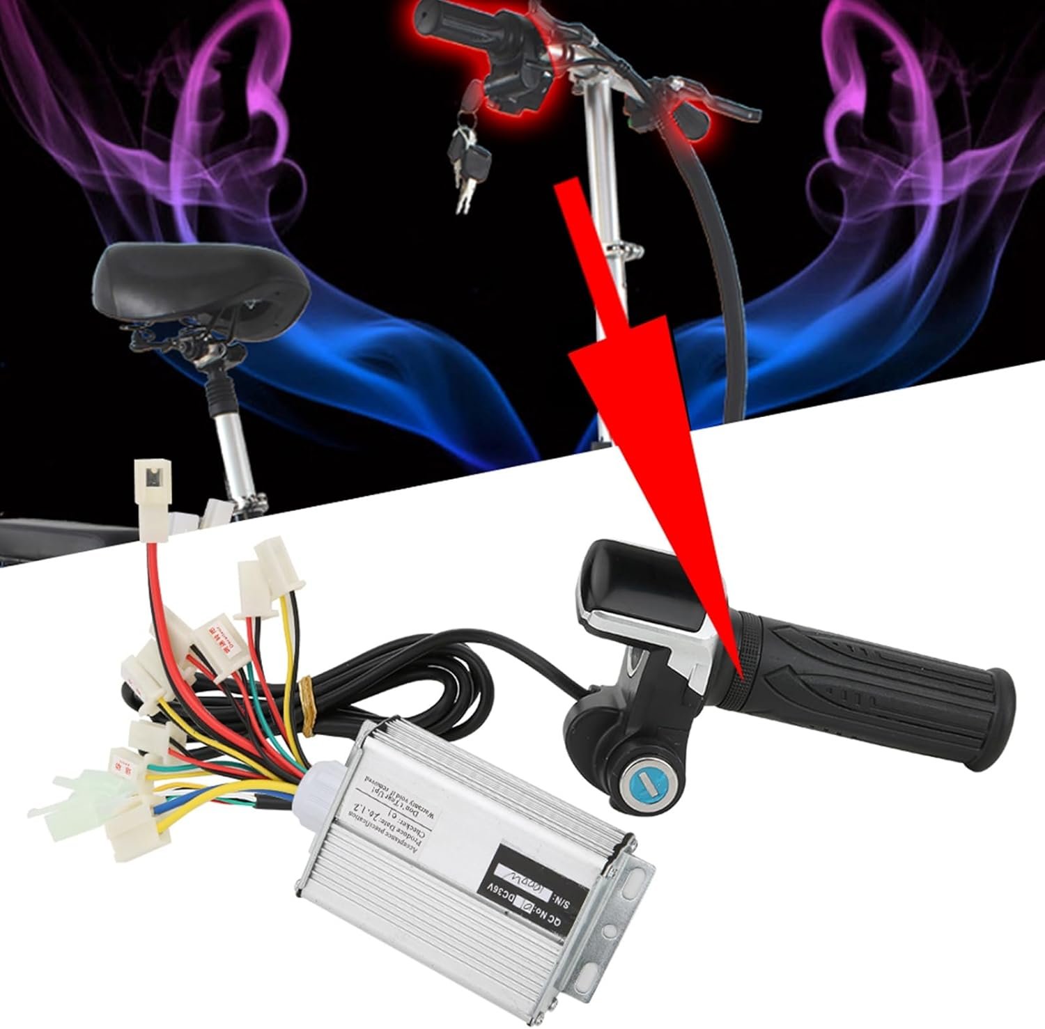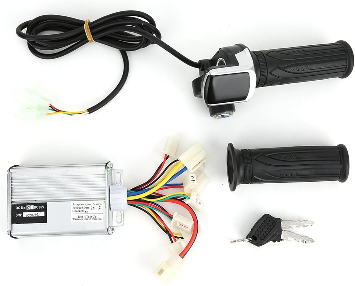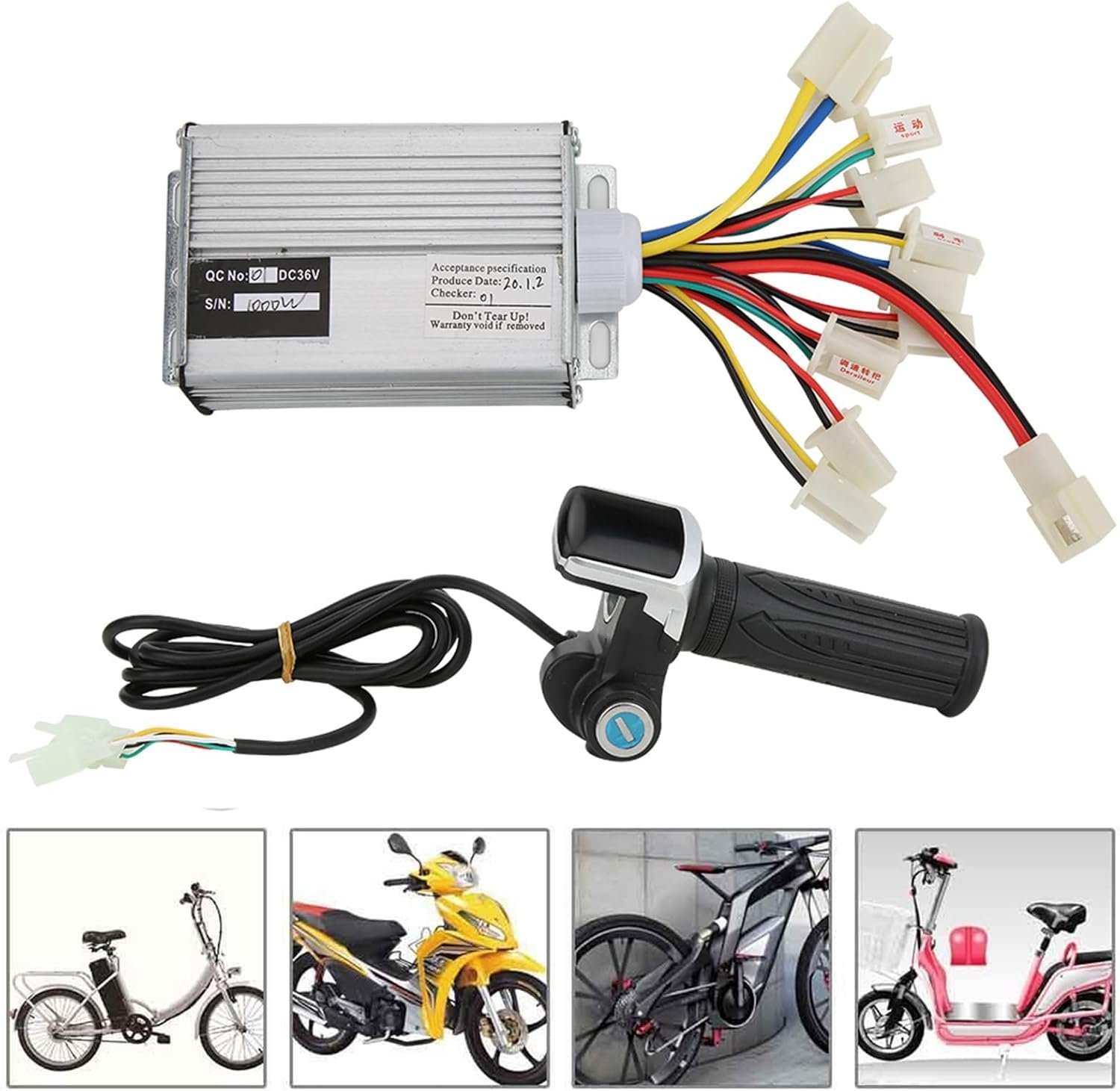 Item Type: Electric Cycling Accessory Material: aluminium alloy Weight: Approx. 665g Size: Approx. 9.5×6.5cm/3.7×2.6in Rated power: 1000W Voltage: 36V Package List: 1 x Controller 1 Pair x Thumb Throttle grip 2 x Key