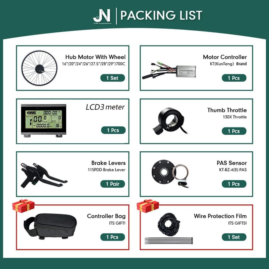 ♣【LCD DISPLAY】: Upgrade your electric bike conversion kit to an LCD display. It displays all essential information such as battery percentage, speed, total one-way distance, power, PAS level and error codes for easy troubleshooting.