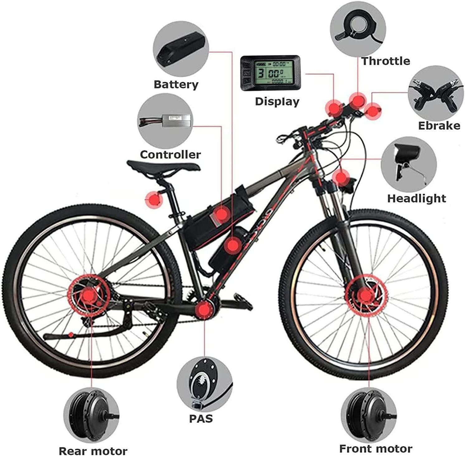 【LCD DISPLAY】: Upgrade your electric bike conversion kit to an LCD display. It displays all essential information such as battery percentage, speed, total one-way distance, power, PAS level and error codes for easy troubleshooting.