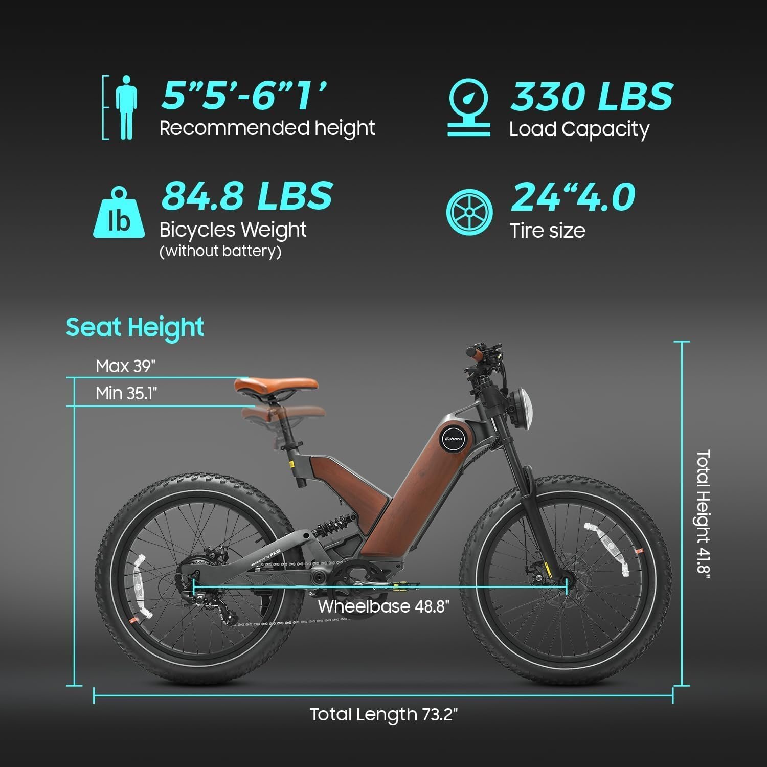 【👍𝐄𝐱𝐜𝐞𝐥𝐥𝐞𝐧𝐭 𝐅𝐞𝐚𝐭𝐮𝐫𝐞𝐬 𝐚𝐧𝐝 𝐇𝐮𝐦𝐚𝐧-𝐂𝐞𝐧𝐭𝐞𝐫𝐞𝐝 𝐃𝐞𝐬𝐢𝐠𝐧 𝐄𝐥𝐞𝐦𝐞𝐧𝐭𝐬👍】 ①peak 1000W Motor ②48V 20Ah Battery ③Adjustable oil spring rear suspension ④Ultra light magnesium alloy frame ⑤Super upgraded color display connect APP ⑥24*4.0 Fat Tire ⑦Ultra high load-bearing capacity