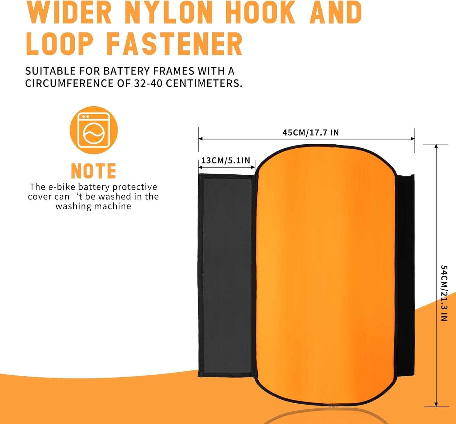 Wide Compatibility – Featuring an expanded design, this ebike cover is compatible with a wide range of e-bike models, with a frame circumference ranging from 11.8”-16.5”. Its snug fit enhances the overall safety and stability of your battery, ensuring broader usability. Suitable for MTB ebike, All Terrain Fatbike electric bike, City bicycle electric, Mid-drive or Rear motor ebike, etc.