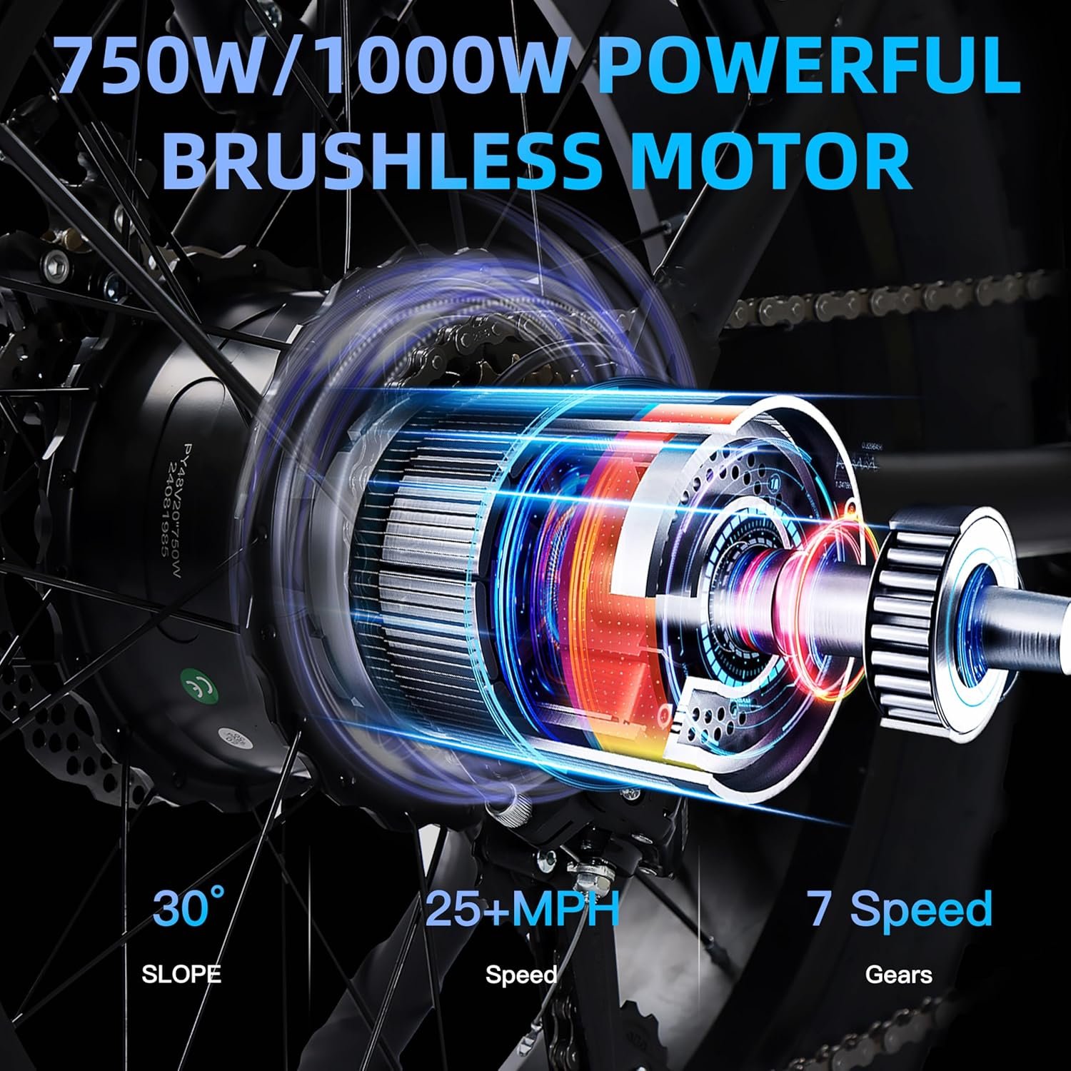 Home E-bikes Electric Bicycle for Adults Peak 750W, 20″ x 4.0 Fat Tire Electric Bike with 48V 10.4Ah Removable Battery, 25-50MPH E-Bike, 7-Speed, UL 2849 Certified, 5 Pedal-Assist Levels