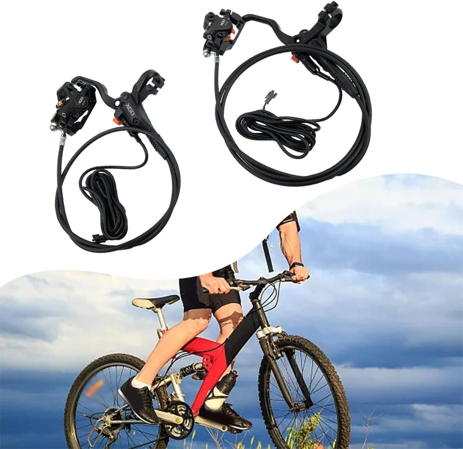 [COMPLETE BRAKE SET]: This comprehensive package includes both left and right brake levers with electric power control shifters. The set comes with a front brake (850mm housing length) and rear brake (1550mm housing length), both featuring 180mm electric cables for convenient installation on your electric bicycle.