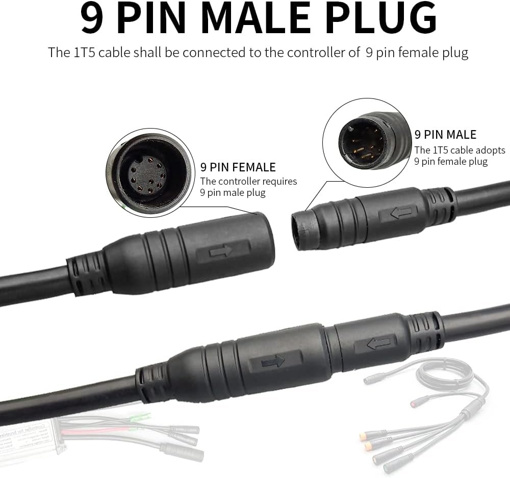 Electric bicycle waterproof 9-pin 1T5, connect controller and display, throttle,headlight and left and right brake levers