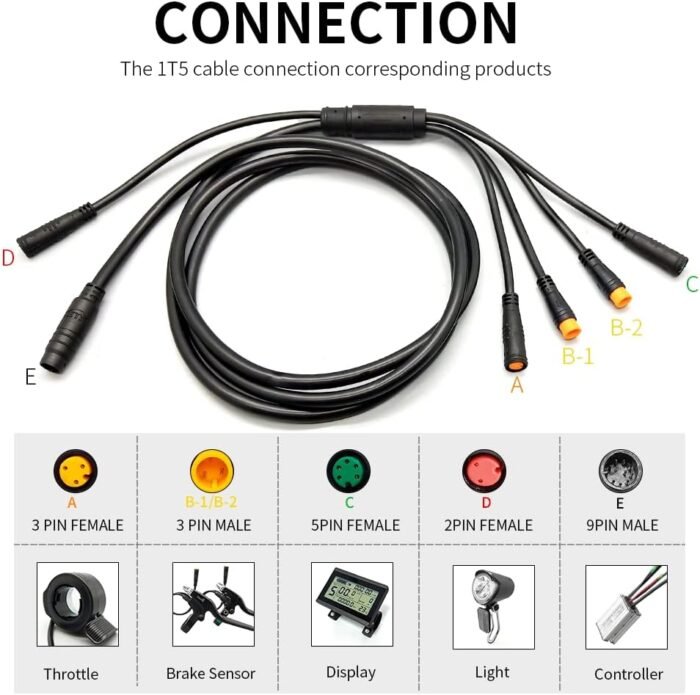 One end is connected to the electric bicycle controller, the other end is connected to a pair of brake levers, a display,a throttle and headlight.