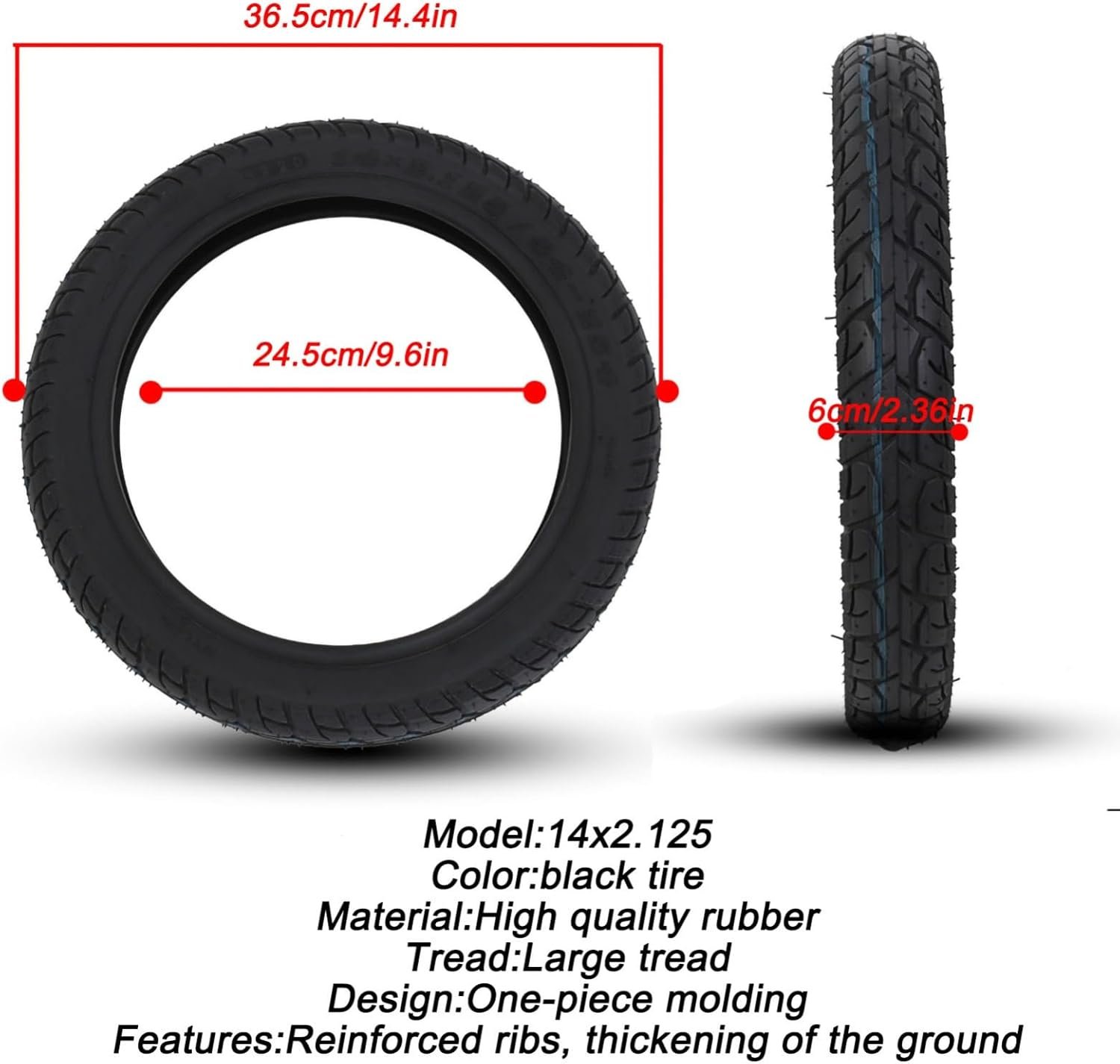 â–² EASY DREVING EXPERIENCE: The 14X2.125 tire is designed with widened shoulder, which can reduce your resistance during driving, save the power of electric vehicle, and make it more economical and practical..You can drive on gravel roads, oil roads, muddy roads, snow roads, and grasslands easily and safely.