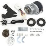 【The Package Includes】1x 250W 24V brushed motor with flywheel; 1x chain; 1x customized sprockets and components; 1x motor controller; 1x mounting plate + bolt; 1x five-star thumb throttle (with battery indicator and switch button).