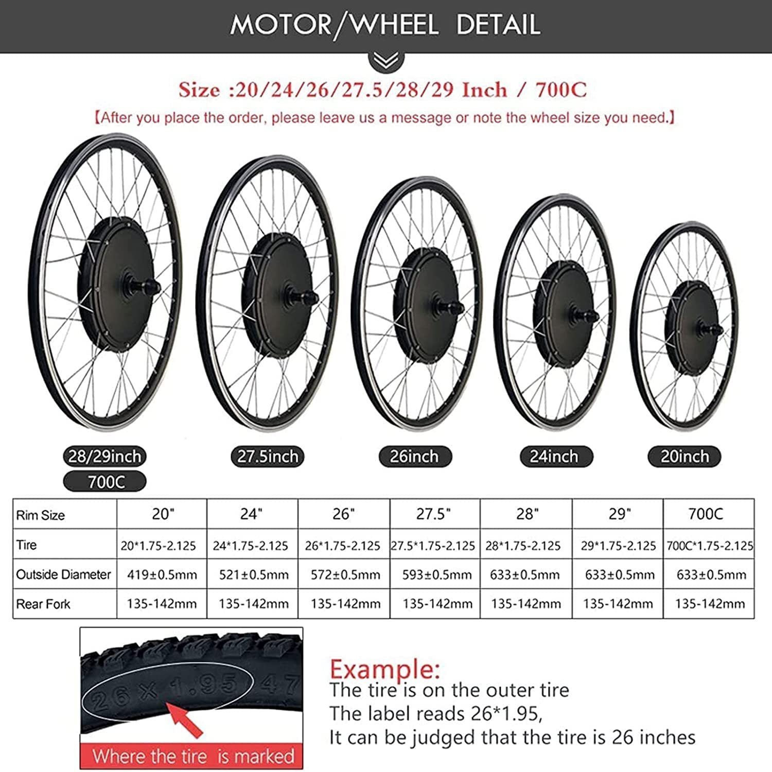Electric Bike Conversion Kit E-Bike Conversion Kit Rear Wheel Cassette 20 ”, 24”, 26 ”, 27.5”, 28 ”, 29”, 700c Electric Bike Kit, Electric Bike Hub Motor with LCD Displ