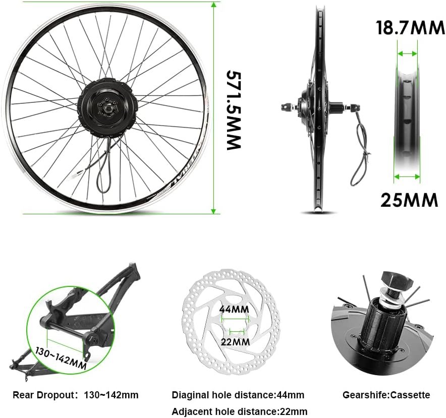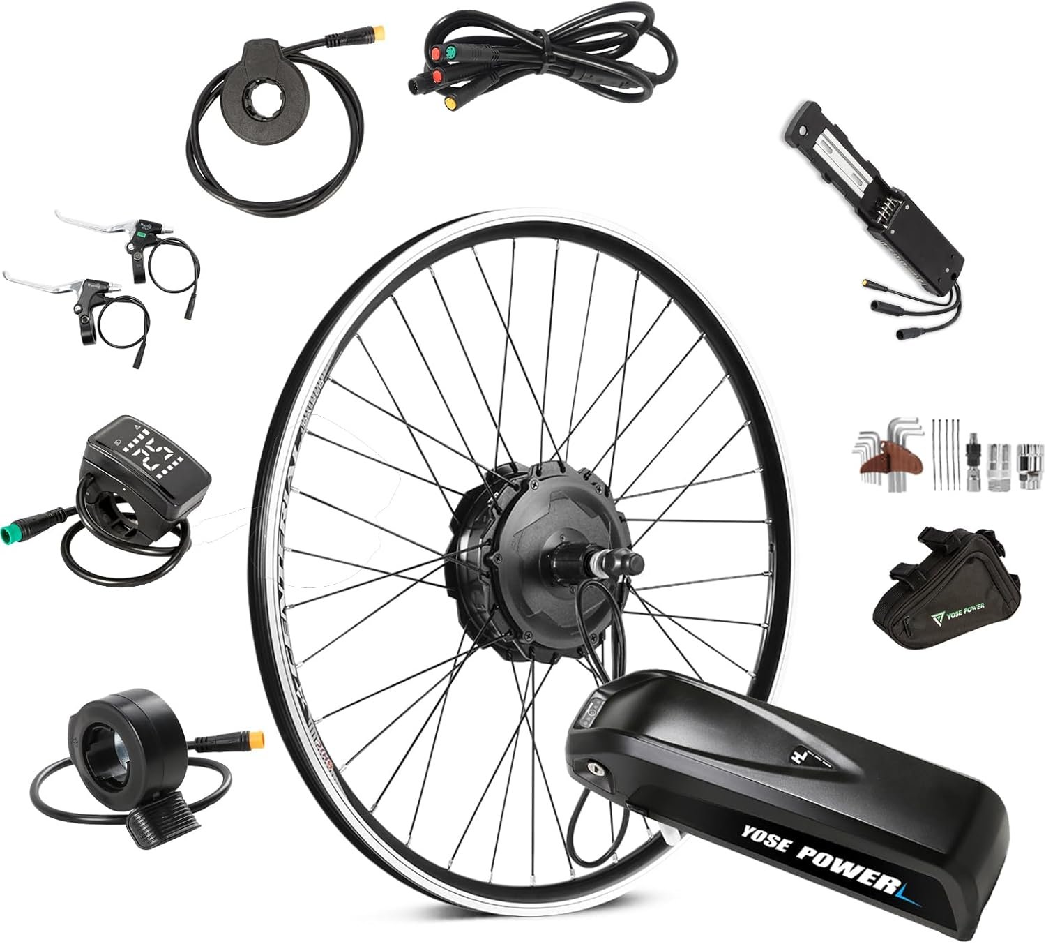 Ebike Conversion Kit include all necessary components for installation; the wheel hub motor,ebike battery, integrated controller which inside the battery holder base, display, throttle, brake levers, pedal-assist system, and cables. Please note that in this Electric Bike Kit, THE TIRE ARE NOT INCLUDED!