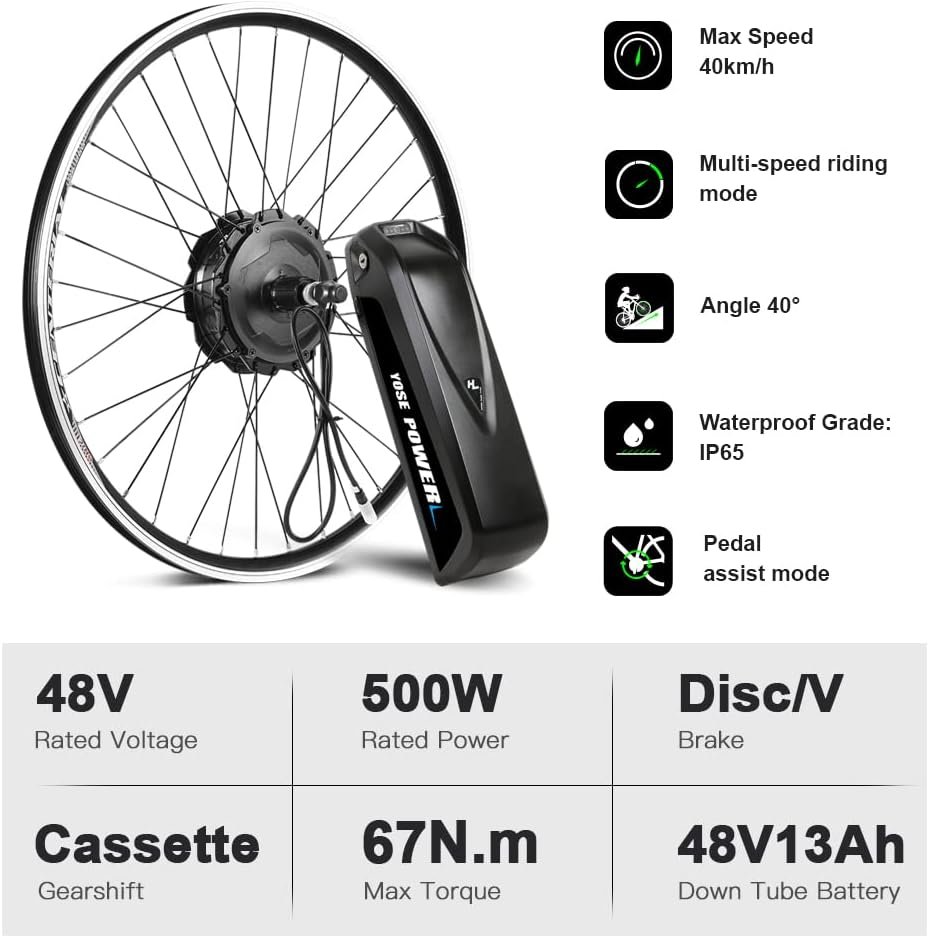 48V500W AKM Brushless gear motor for 26inch rear wheel ,maximum torque 67 N.m, maximum speed 40 km per hour (LED display can set the maximum speed).It’s ok for Disc and V brake bike and suit for 8S 9S 10S Cassette freewheel.Easily DIY your bicycle to an powerful electric bike 48V500W. Ebike Conversion Kit is ready to install with an aluminum double-walled rim and hub motor already attached.