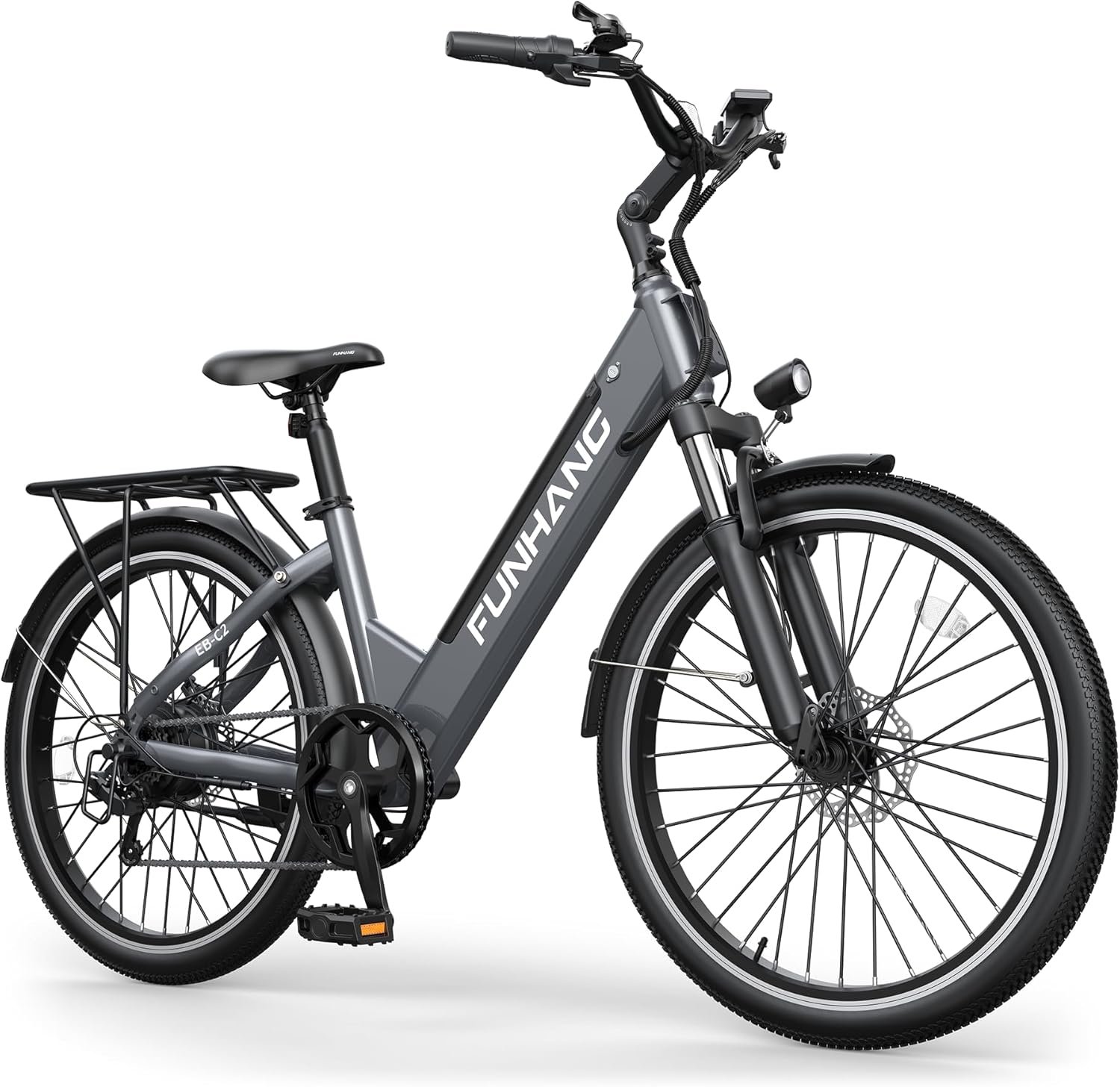 UNMATCHED COMFORT & CONVENIENCE: Funhang city cruiser ebikes’ step-thru frame designed for comfort, allow riders to easily get on and off the e bike. The adjustable handlebar stem and seat can be tailored to ideal position, ensuring a relaxing and ergonomic ride for riders of different heights. Full-coverage fenders protect you from mud and water. Solid rear rack adds versatility to carry groceries or other essentials, making it perfect for everyday commutes, grocery runs and leisurely rides.