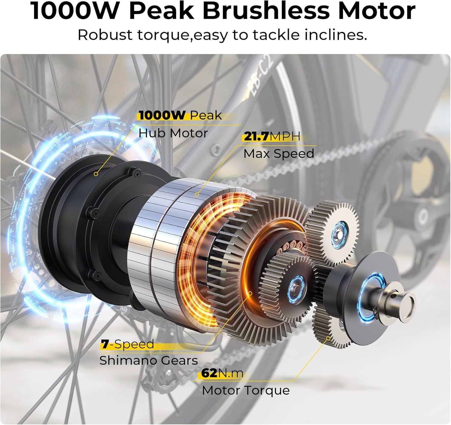 1000W PEAK BRUSHLESS MOTOR: Funhang electric bike is powered by a robust 500W (1000W peak) high-speed brushless motor, boasting a top speed of 21.7MPH and maximum torque of 62N.m. Its impressive power and performance allow you to conquer steep inclines and long-distance adventures with ease. Whether you’re commuting to work, enjoying a workout or exploring new routes, this electric bike for adults offers you a smooth and enjoyable experience.