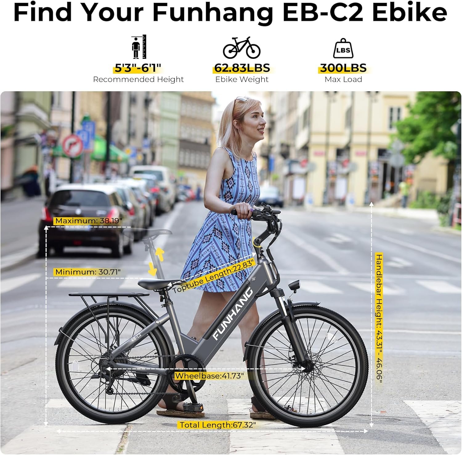 EASY ASSEMBLY AND RELIABLE SUPPORT: Funhang EB-C2 electric bike is almost 85% pre-assembled and comes with instructions and tools. You can follow the assembly video on our page or user manual to complete the rest. Please inflate both tires for the first ride. This ebike weight 62.83 lbs, max load 300 lbs, recommended height 5’3″-6’1″. 1-year warranty and lifetime tech support are covered. If you have any questions, please don’t hesitate to contact us. We will respond to you within 24 hours.