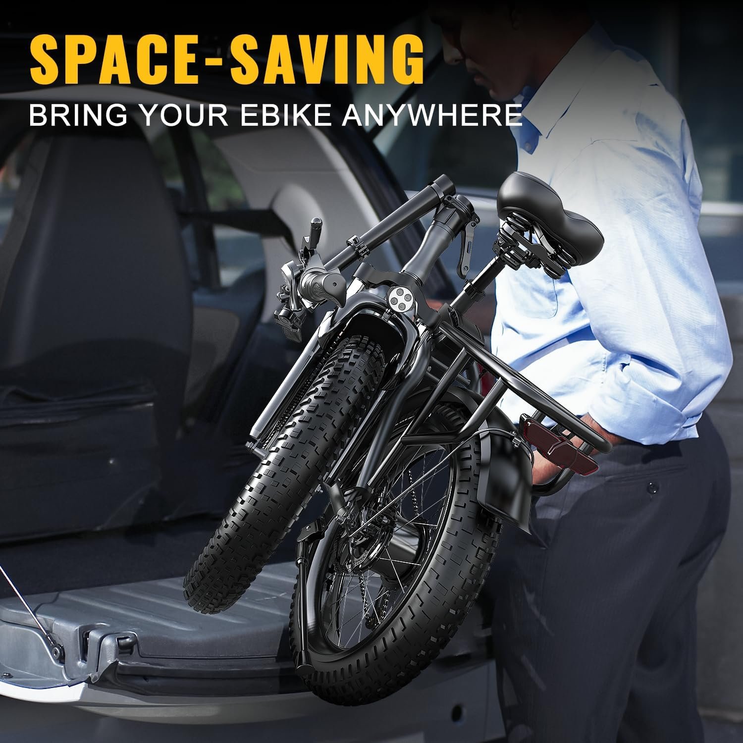 Electric Bike for Adults, 1000W Peak Motor, 48V 20AH Removable Battery E Bike, 30+MPH, 80 Miles Max Range, 20″ Fat Tire Folding Electric Bike, Adult Electric Bicycles for Commute Beach Snow