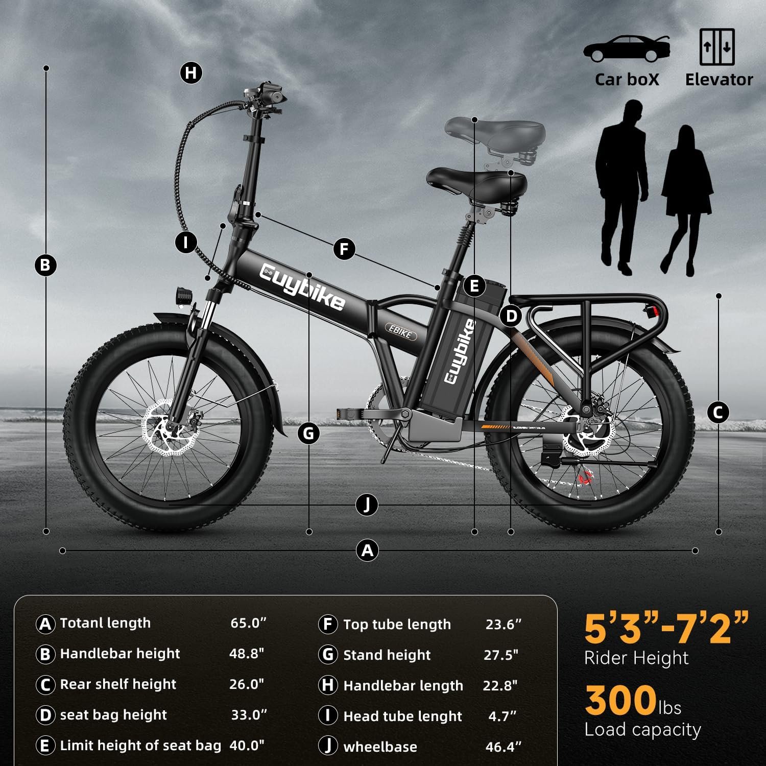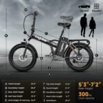 𝐒𝐚𝐟𝐞 𝐀𝐧𝐝 𝐂𝐨𝐦𝐟𝐨𝐫𝐭𝐚𝐛𝐥𝐞 𝐑𝐢𝐝𝐢𝐧𝐠: The electric bicycle adopts EABS power-off brake + front and rear double disc brakes for sensitive braking. It is designed with strong off-road performance, reliable braking force and high safety factor. High-strength shock-absorbing front fork and seatpost absorb the bumps of long, rough roads. The 20″ fat tires are anti-slip and puncture-proof, ensuring you can ride like roads, snow, beaches, and rugged mountain roads.