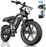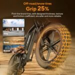 【Fat Tires & Dual Disc Brakes】Equipped with 20” puncture-resistant fat tires, the electric bikes ensures superior grip on snow, sand, or rugged mountain roads. Dual hydraulic disc brakes provide instant, reliable stopping power, even in wet conditions, keeping you safe on every journey.