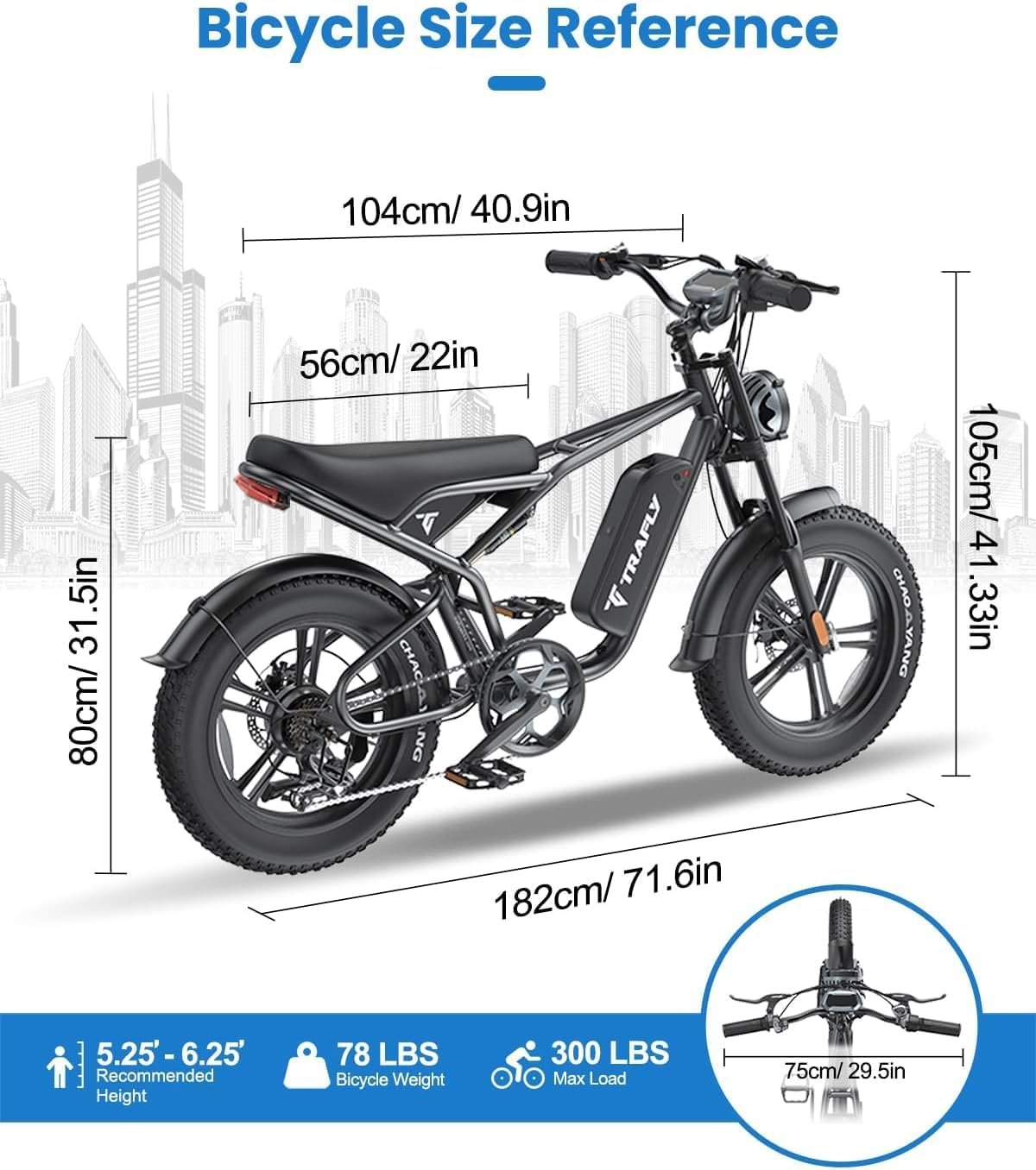 Installation and product service: Trafly offers e-bikes with aluminium frames for greater durability, and 90% of our e-bikes come pre-assembled with kits, manuals, and installation videos to make installation a breeze. In addition, some parts of the e-bike are covered by our 365-day warranty. If you encounter any problems, please feel free to contact our professional service team, who will do their best to help you 24 hours a day