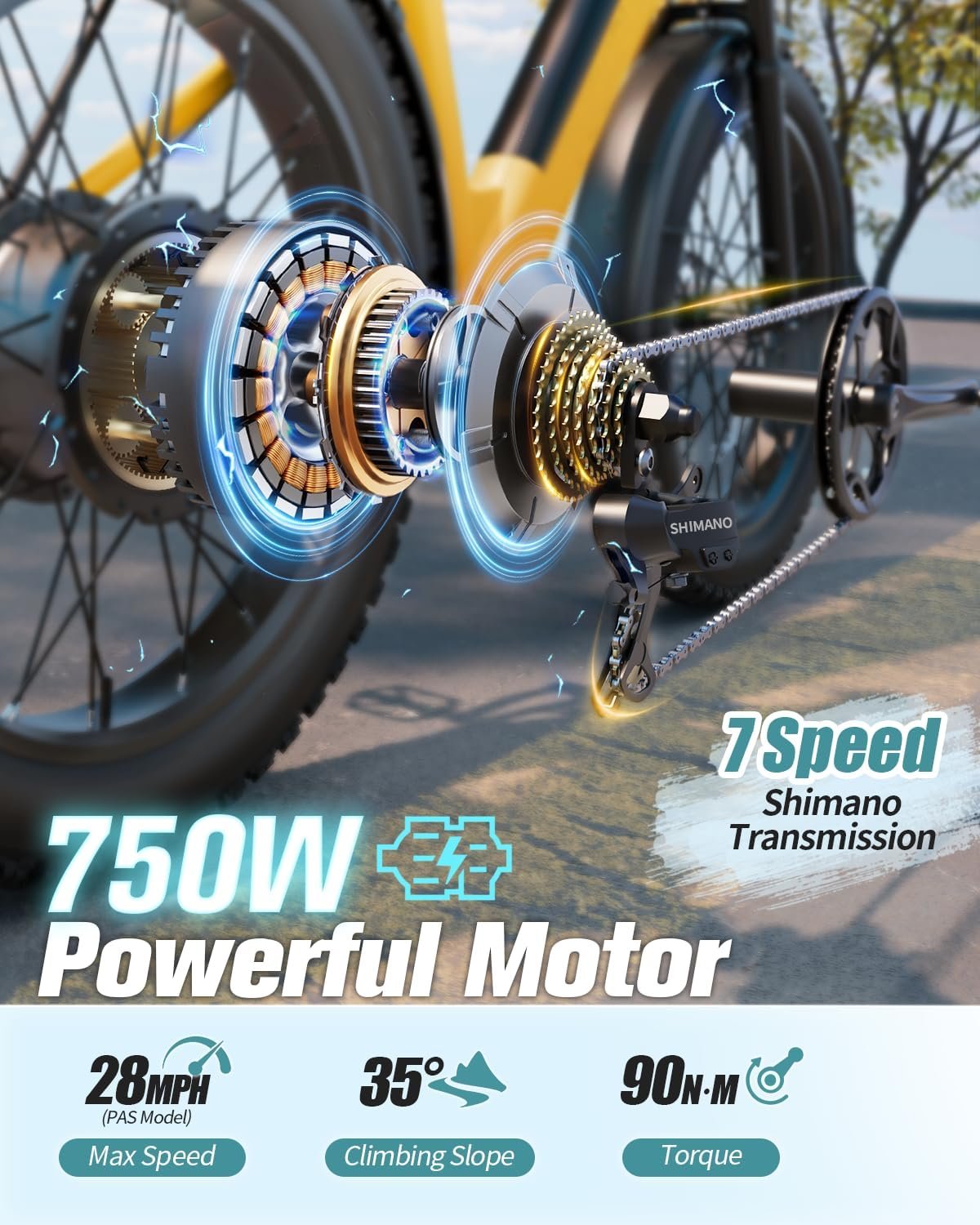 960W Peak Powerful Motor: PUCKIPUPPY adult electric bike adopts 750W (960W peak) brushless motor. Top speed up to 28MPH in pedal assist mode, 20MPH in pure electric throttle mode. Maximum torque up to 90N-M, easily conquer 35° slopes. It is a commuter e-bike with excellent performance.