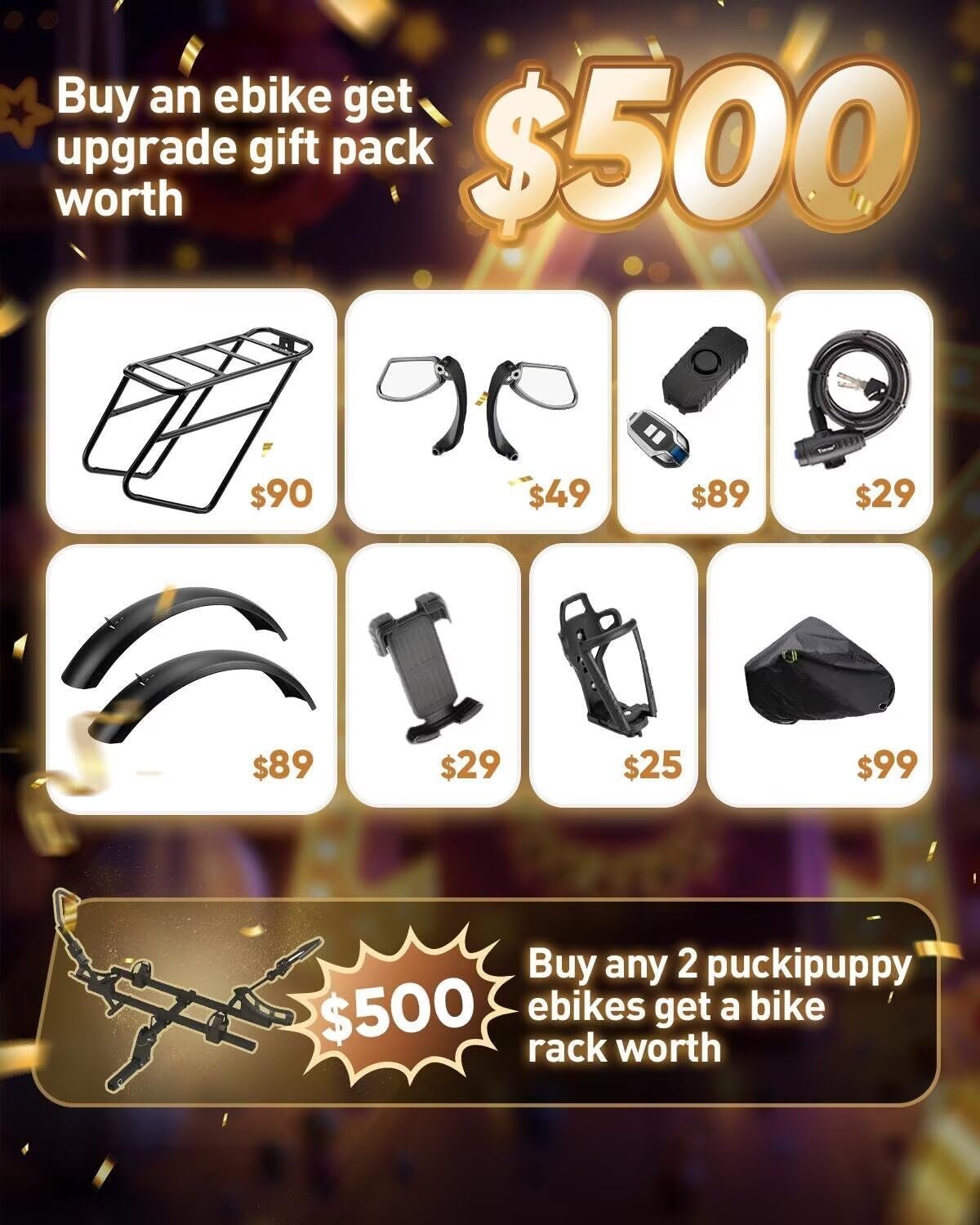 PUCKIPUPPY Exclusive: Purchase any 2 PUCKIPUPPY series e-bikes and get an extra bike rack!