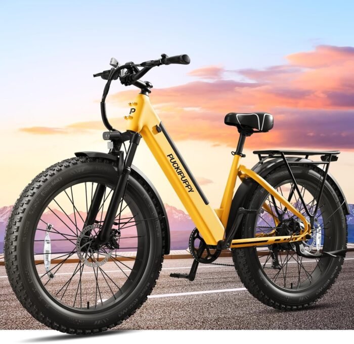 PUCKIPUPPY Exclusive: Purchase any 2 PUCKIPUPPY series e-bikes and get an extra bike rack! 500 USD Ride Accessory Packs: By purchasing an electric bike, you will receive the 2024 riding accessory kit. Includes phone holder, bike cup holder, bike mirror, bike lock, bicycle cover, bike alarm. PUCKIPUPPY: Our team is committed to getting your ebike to you within 7 business days of placing your order or we will provide you with an additional $100 worth of bike accessories. 960W Peak Powerful Motor: PUCKIPUPPY adult electric bike adopts 750W (960W peak) brushless motor. Top speed up to 28MPH in pedal assist mode, 20MPH in pure electric throttle mode. Maximum torque up to 90N-M, easily conquer 35° slopes. It is a commuter e-bike with excellent performance. 48V 15AH Battery: The all terrain e bicycles are equipped with 48V 15AH ultra large capacity lithium removable batteries. Every time charging can drive 20MPH 40 Miles in fully electric drive, can drive 28MPH 60 Miles in pedal and electric hybrid drive. It is definitely the best choice for daily commuting! 3 DRIVE MODES: ①Fully Electric Mode, don’t need to use pedals, saving body energy. You can control the speed 0-20MHP through the throttle, and the range is 40Miles. ②Pedal Assist Mode(PAS), the motor will assist you with a moderate amount of power as you pedal the bicycle. You can control the speed 0-28MHP by gear, and the range is 60Miles. ③Normal Bike Mode, pedal the E-Bike normally as mountain bike or road bicycle, we use 7 gears drivetrain help you conquer various slopes. 26″AIl Terrain Fat Tire: The 26 inch fat tires used by PUCKIPUPPY electric bike have advantages over traditional tires in terms of slip resistance, wear resistance, and stability. Therefore, PUCKIPUPPY electric bicycles can be suitable for roads such as mountains, snow, beaches, and urban roads, and are not prone to tire explosions. Colorful HD Screen: Greatly improves the visual comfort and clarity compared to traditional digital screens. We screen can be seen clearly both day and night, allowing you to control the vehicle’s dynamics in real-time; However, traditional digital screens cannot be seen clearly in strong light and at night.