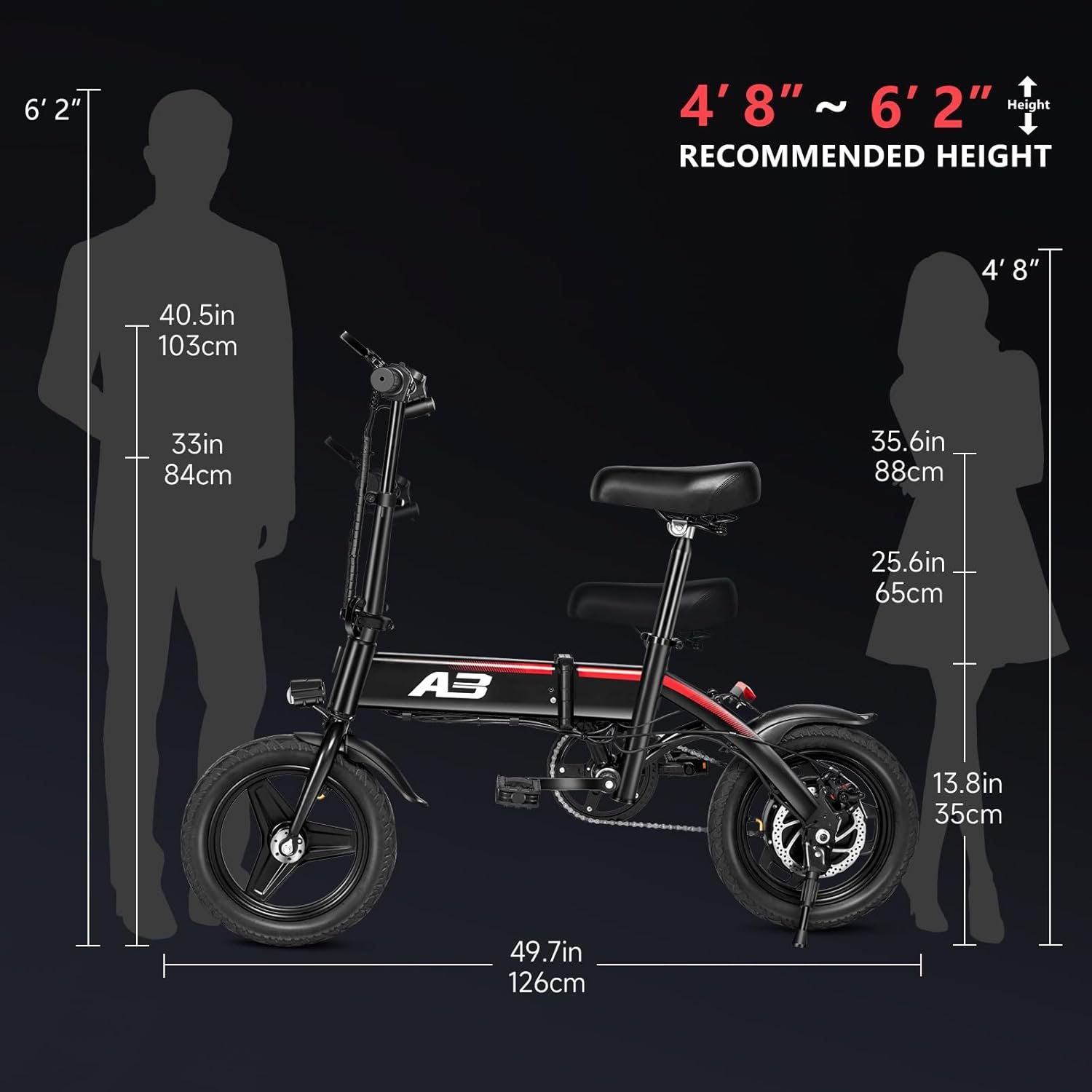 【Portable & Comfortable Design】The electric bike is made of aluminum alloy, 14 inches folding, and can be placed in the car’s trunk. Adjustable seat and handlebars, and ergonomic seat design, provide a comfortable riding experience. Whether it is men, women, retired people, students, or office workers, they can easily enjoy the convenience it offers for travel, delivery, school, commuting, etc.