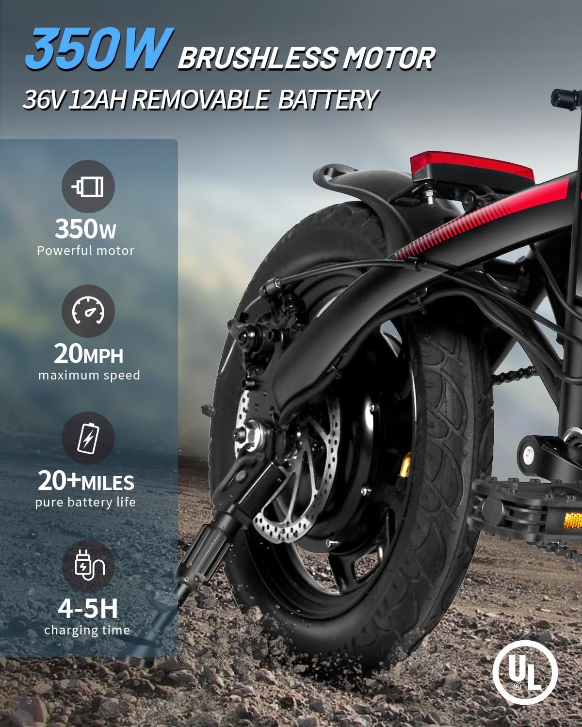 Electric Bike for Adults,16″ EBike,20MPH, 40+Miles(PAS),Commuting Electric Mountain Bicycle with 432Wh 12Ah Removable Built-in Battery,35Electric Bike for Adults,16″ EBike,20MPH, 40+Miles(PAS),Commuting Electric Mountain Bicycle with 432Wh 12Ah Removable Built-in Battery,350W Gear Motor with 7 Speed,Front Fork SuspensionW Gear Motor with 7 Speed,Front Fork Suspension