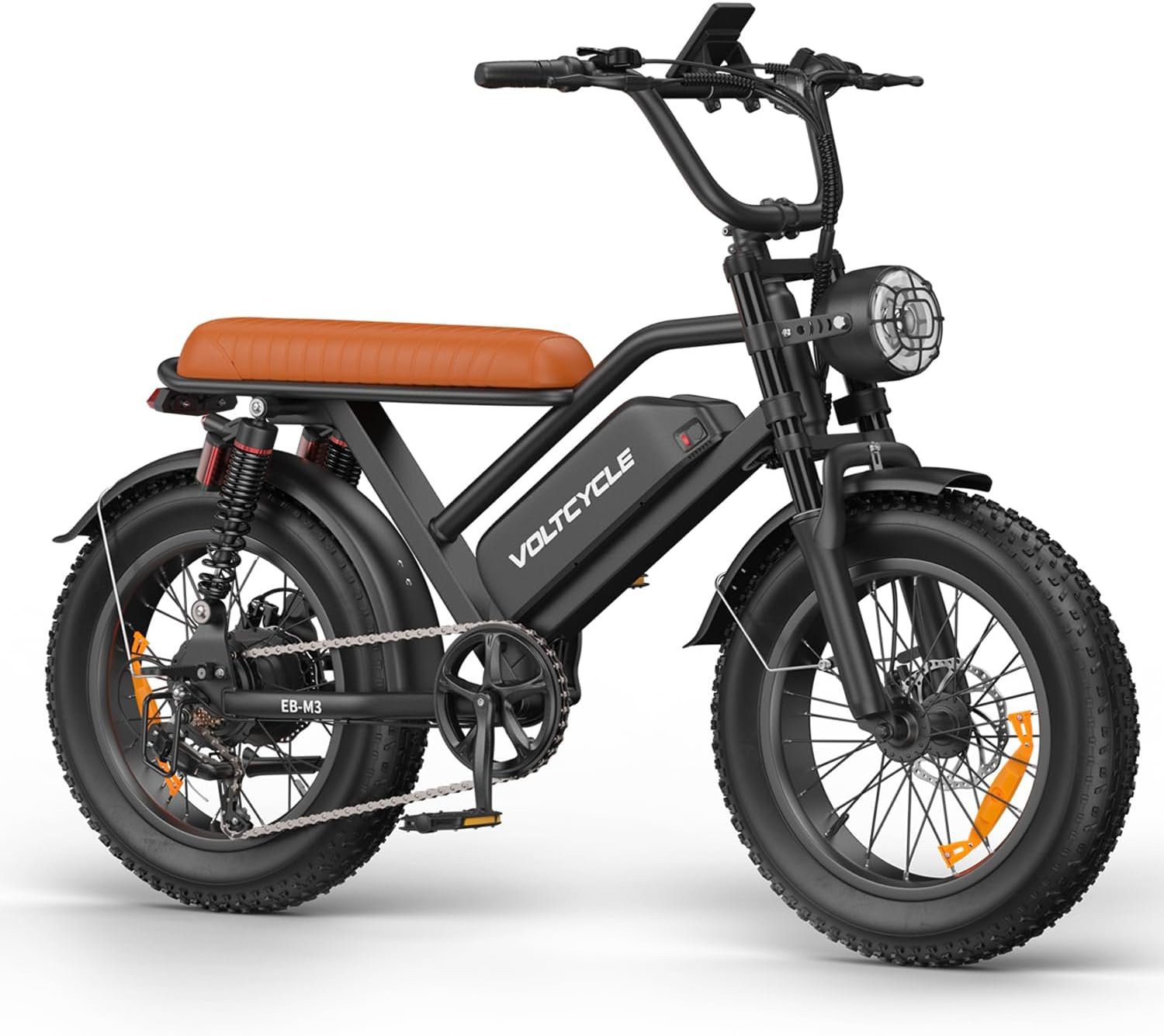 1500W PEAK BRUSHLESS MOTOR: VoltCycle M3 Fat tire electric bike for adults adopts a high-speed brushless 750W motor (PEAK 1500W), boosted a top speed of 28MPH. Its ample power allows you to climb hills/inclines and conquer off-road challenges effortlessly