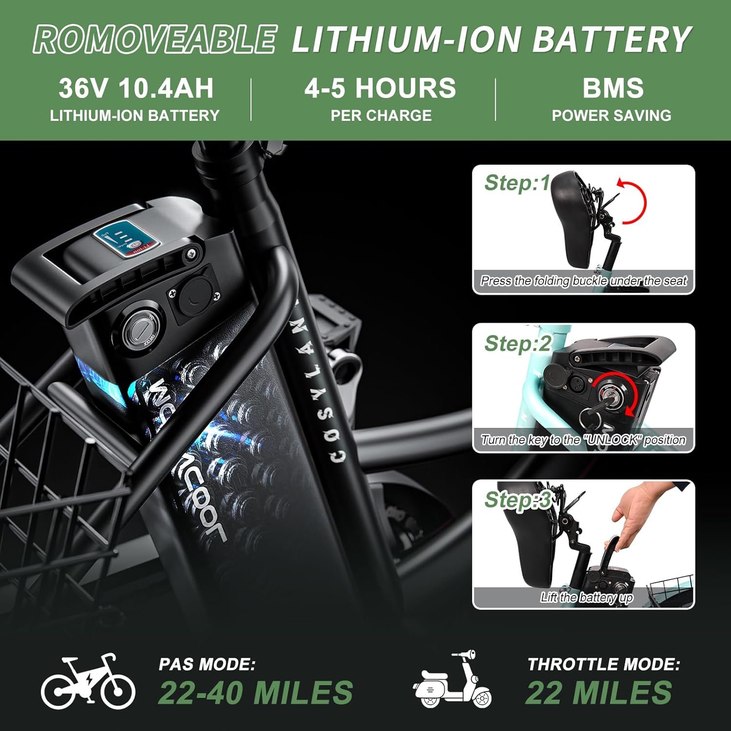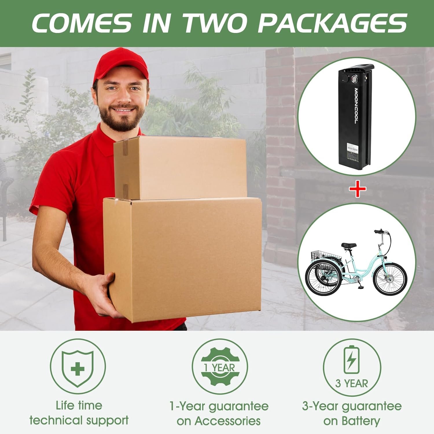 ❤Removable Battery:Equipped with a 36V/10Ah removable lithium battery, the electric bike for adults can be fully charged in about 5-6 hours, the electric tricycle bike’s pure electric range is about 20 miles. The battery and bike are shipped separately, so you will receive two packages.