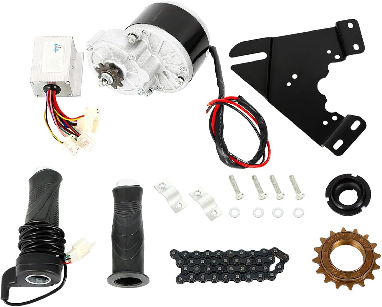 Kit Contents:1x 24V 250W DC motor;1x Chain;1x Freewheel;1x Freewheel adapter;1x Motor controller;1x Mounting plate + bolts;1x Accelerator handle;This bike kit suitable for 16″-28″ bike