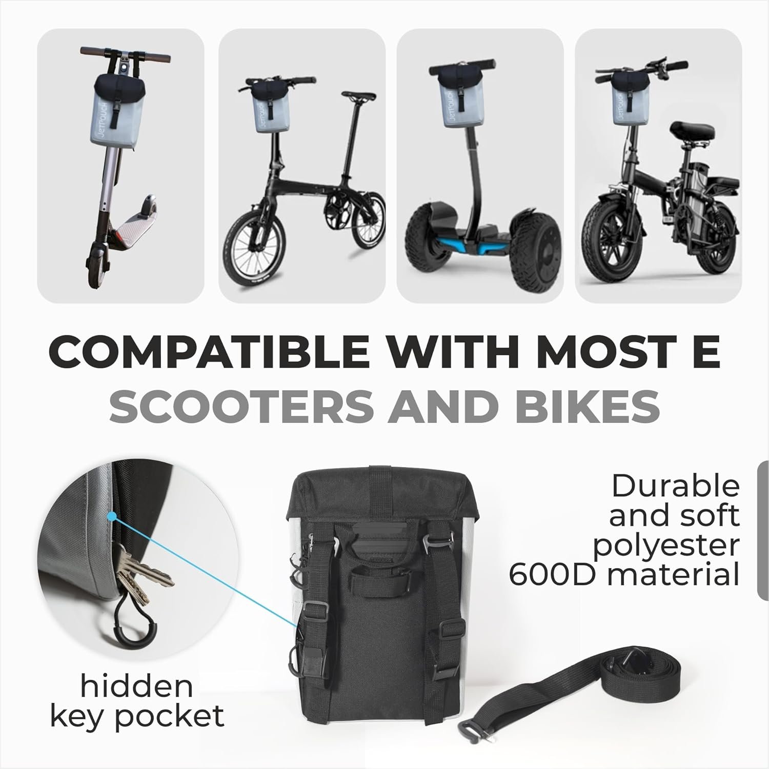 Durability: Crafted From Strong Waterproof 600D Polyester, High-quality Waterproof Zippers, JetPouch Offers Worry-free Durability For Outdoor Adventures. Whether you’re cruising through rough terrains or navigating crowded city streets, this scooter bag ensuring that your gear stays secure and intact throughout your travels, keeping your belongings safe from dust, dirt, and moisture.