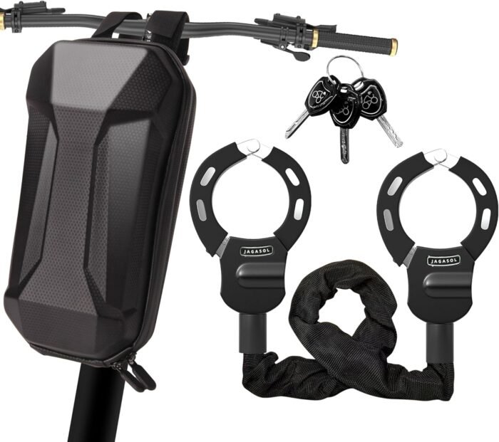 Scooter Bag and Nylon Sleeve: The chain has nylon cover and it can protect the surface paint of the scooter from being damaged, and make the lock more durable. The scooter bag is made of cold press, hard shell design, light and durable rain proof