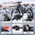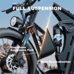Full Suspension Fat Tire Electric Bike: Equipped with dual-crown front suspension fork and rear shock absorber, which greatly reduces bumps during riding. 26″ x 4″ fat tires also provide good grip and excellent shock absorption. This full suspension ebike offers a more comfortable riding experience in the snow, beach, mountain, city roads, helps you conquer most road conditions