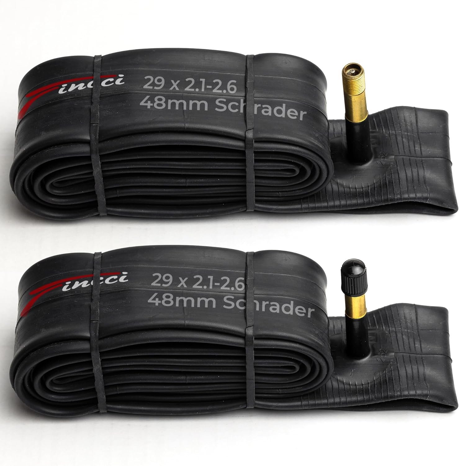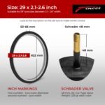 Pack of 2 Inner Tubes – Two Fincci 29-inch inner tubes, compatible with 29 x 2.1, 2.2, 2.3, 2.35, 2.4, 2.5, and 2.6-inch tires for mountain and hybrid bikes.