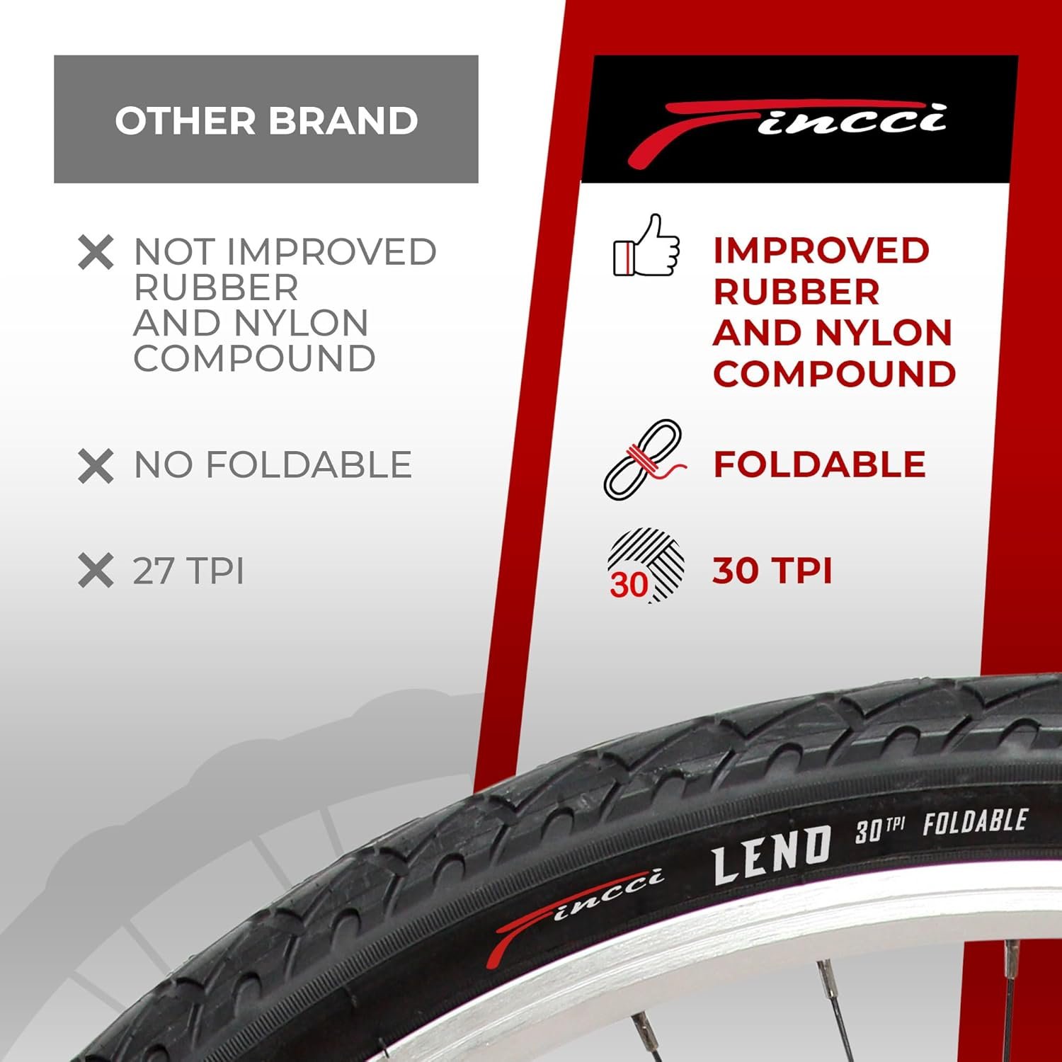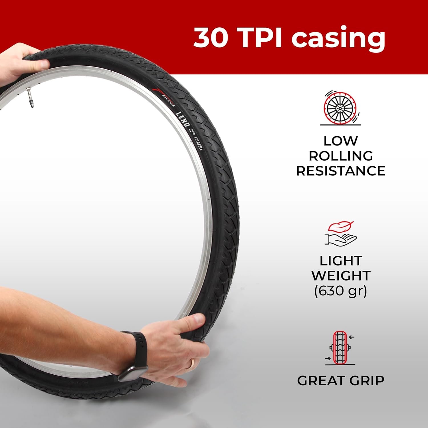 Made of high-quality nylon and rubber compound – Features Kevlar wire for tire foldability – 30 TPI provides improved rolling resistance.