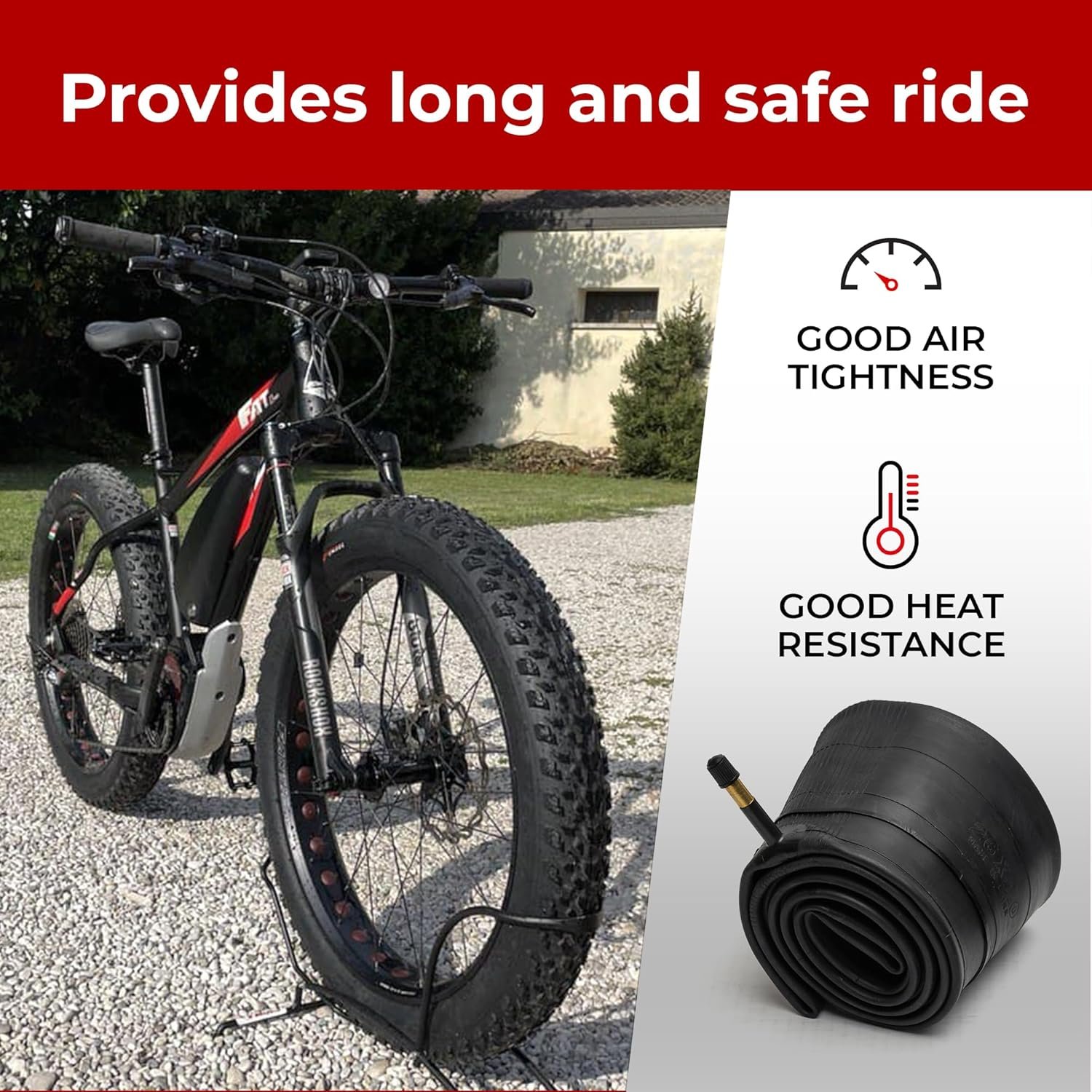 Customers find the bike inner tube to be of good quality, with one mentioning its reinforced pin base. The tube is thick, with one customer noting its thick rubber construction.
