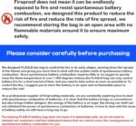 Fireproof does not mean that it is completely resistant to flames from spontaneous battery combustion, we designed this product to reduce the risk of fire and slow down the spread of flames, we recommend storing batteries and packs in an open area with no flammable materials around them to ensure maximum safety.
