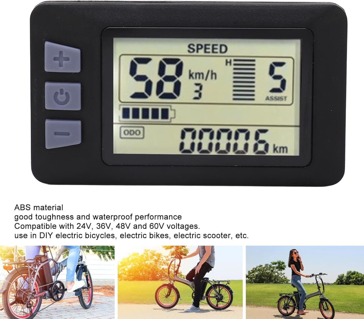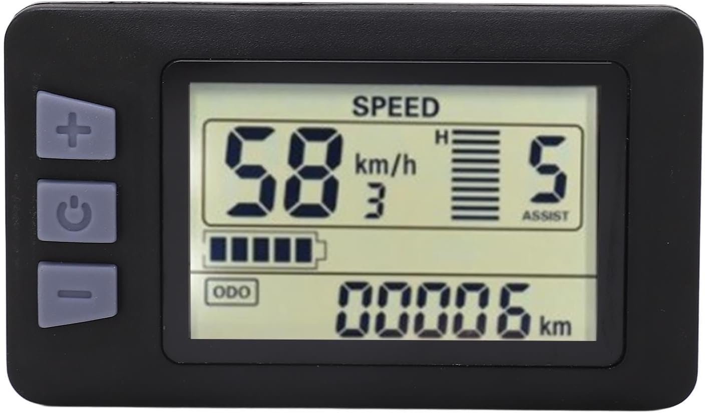 Fockety Computer, 24V 36V 48V 60V Electric LCD Display Meter with 6Pin Plug, E LCD Display Cycling Computer Conversion LCD Instrument for 22.2mm Handlebar