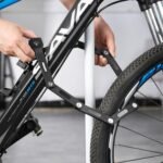 This Aonvmdis folding bike lock comes with a flexible mounting bracket and non-slip straps and screws for easy storage while riding.