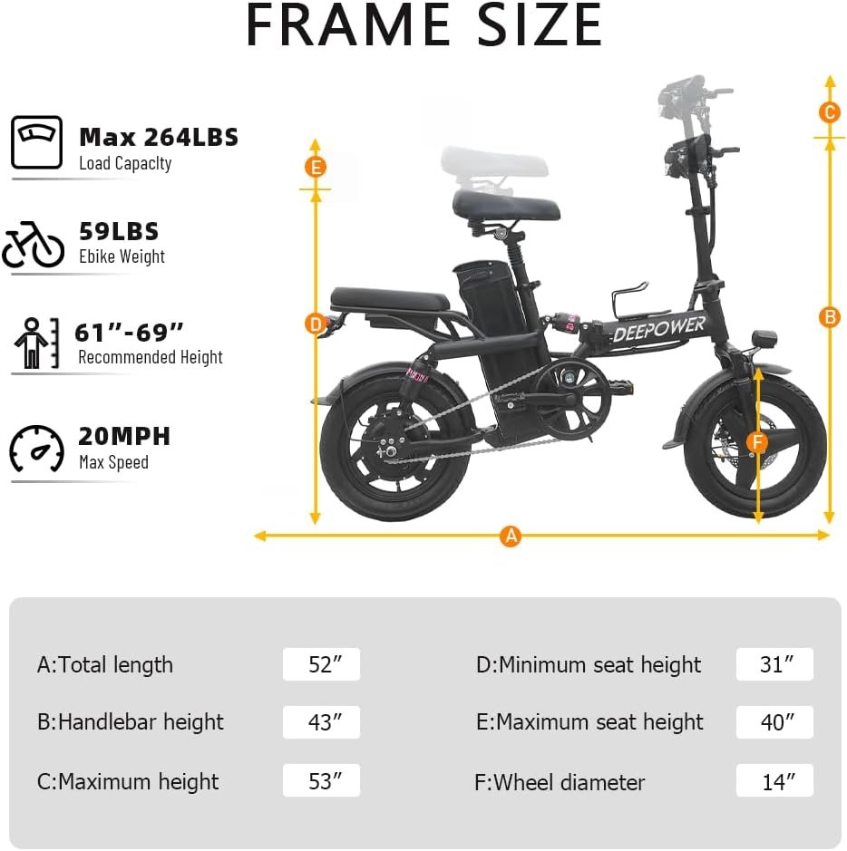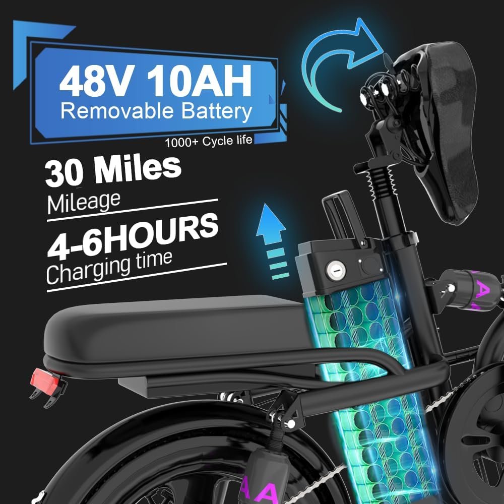 400W Motor & 20MPH Top SpeedMAX 48V 30AH Battery & 60 Miles Range14″ Tire Foldable Commuter Ebike