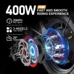 【High Quality Motor & Battery Durability】 The electric bike for adults is equipped with 48V 10AH high capacity lithium battery, can travel 15 miles per charge in pure power mode , easily enough for your day’s use, and is removable The battery has the characteristics of long life, high durability, anti-theft and convenience. The high-quality 400W motor(peak 600W) can reach a maximum speed of 20MPH,uploaded the speed limit lifted video,please check the video.